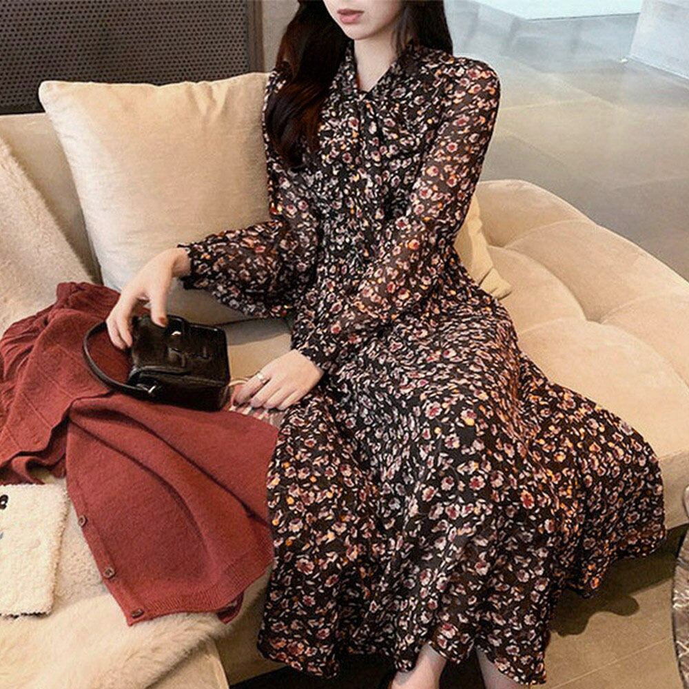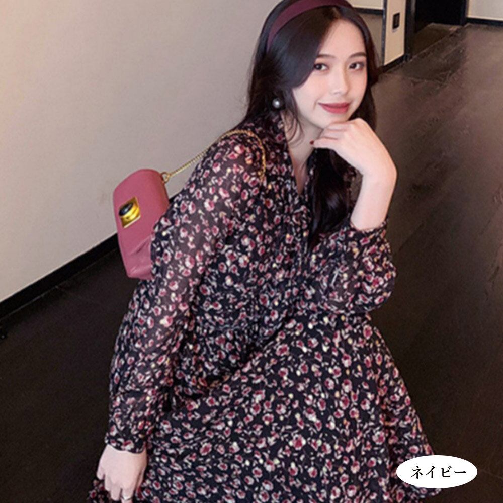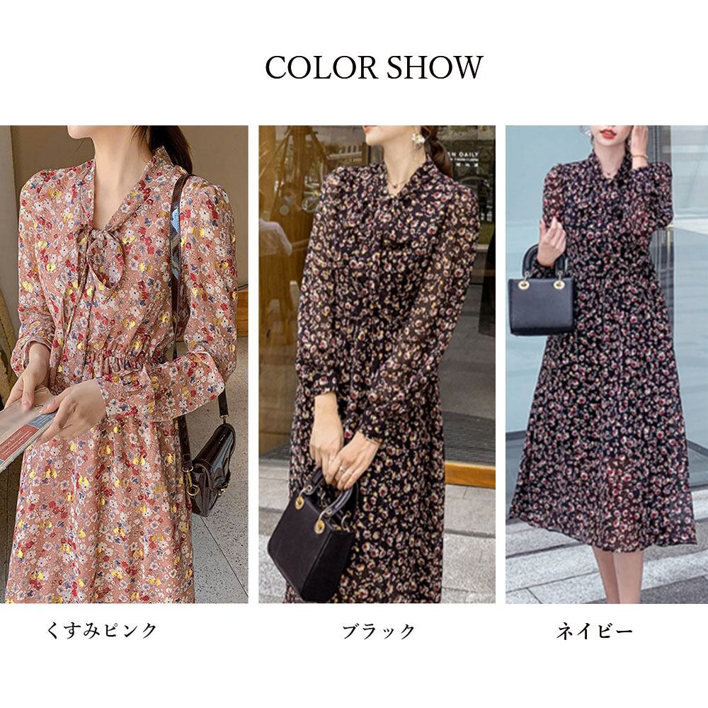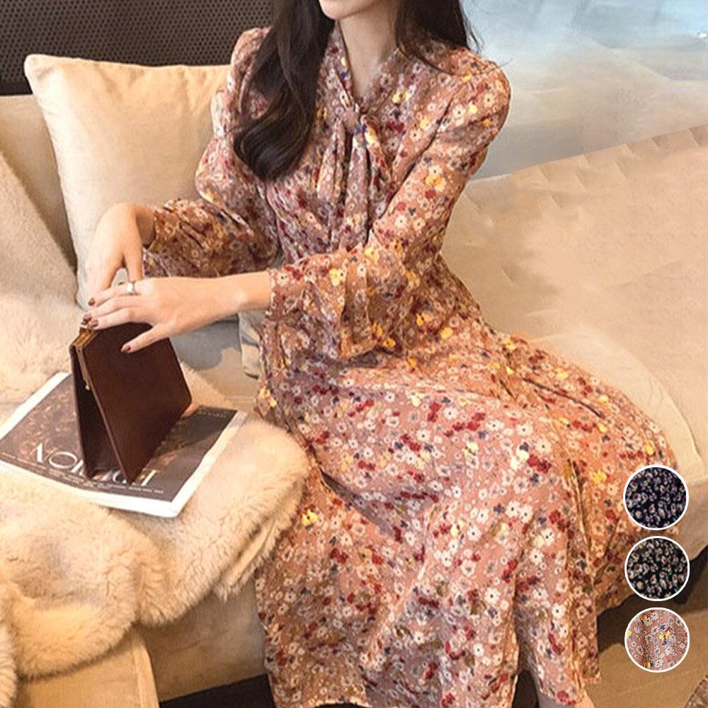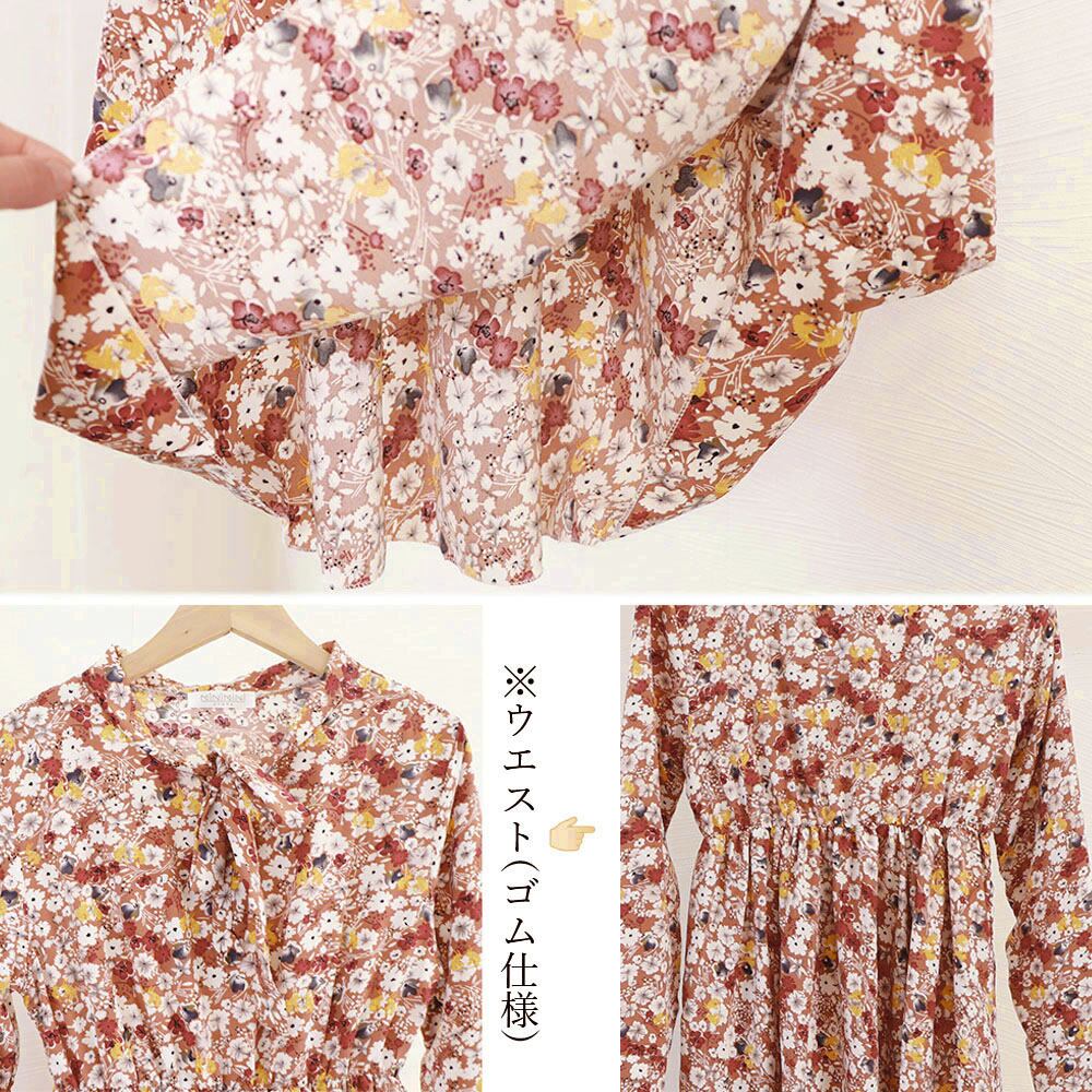 小花柄と愛らしいボウタイリボンがポイントのレトロ風のワンピースです