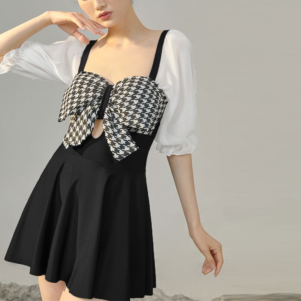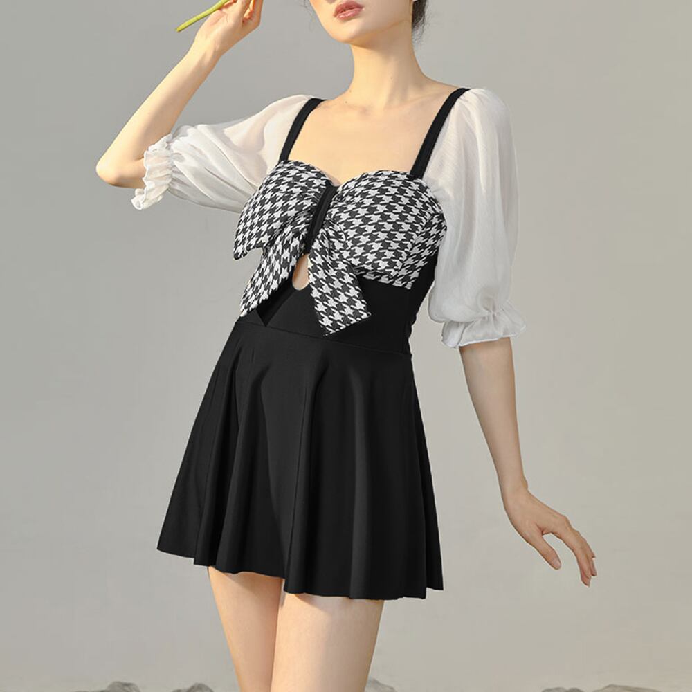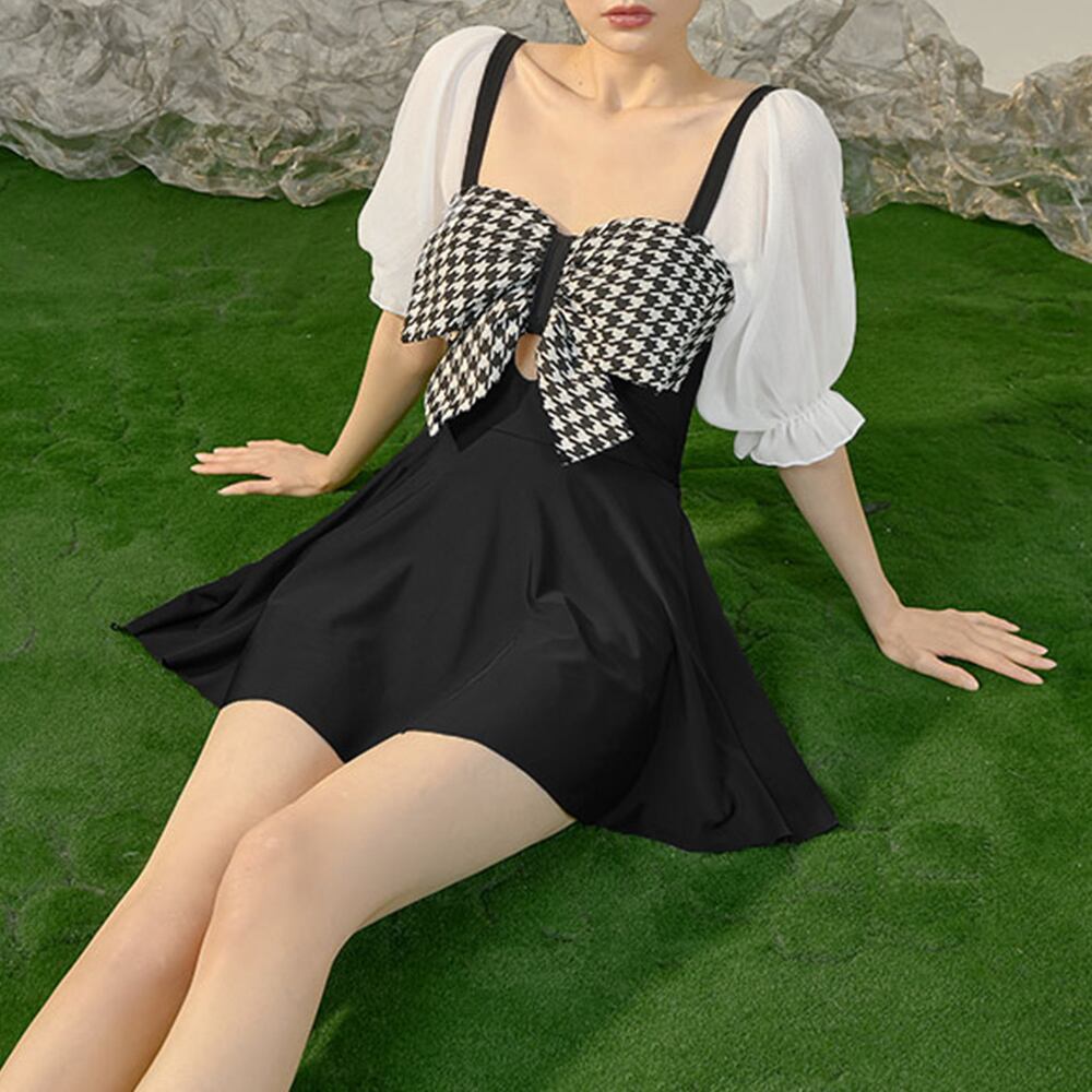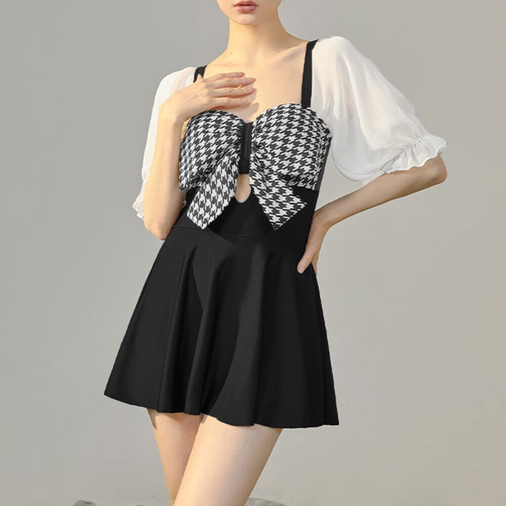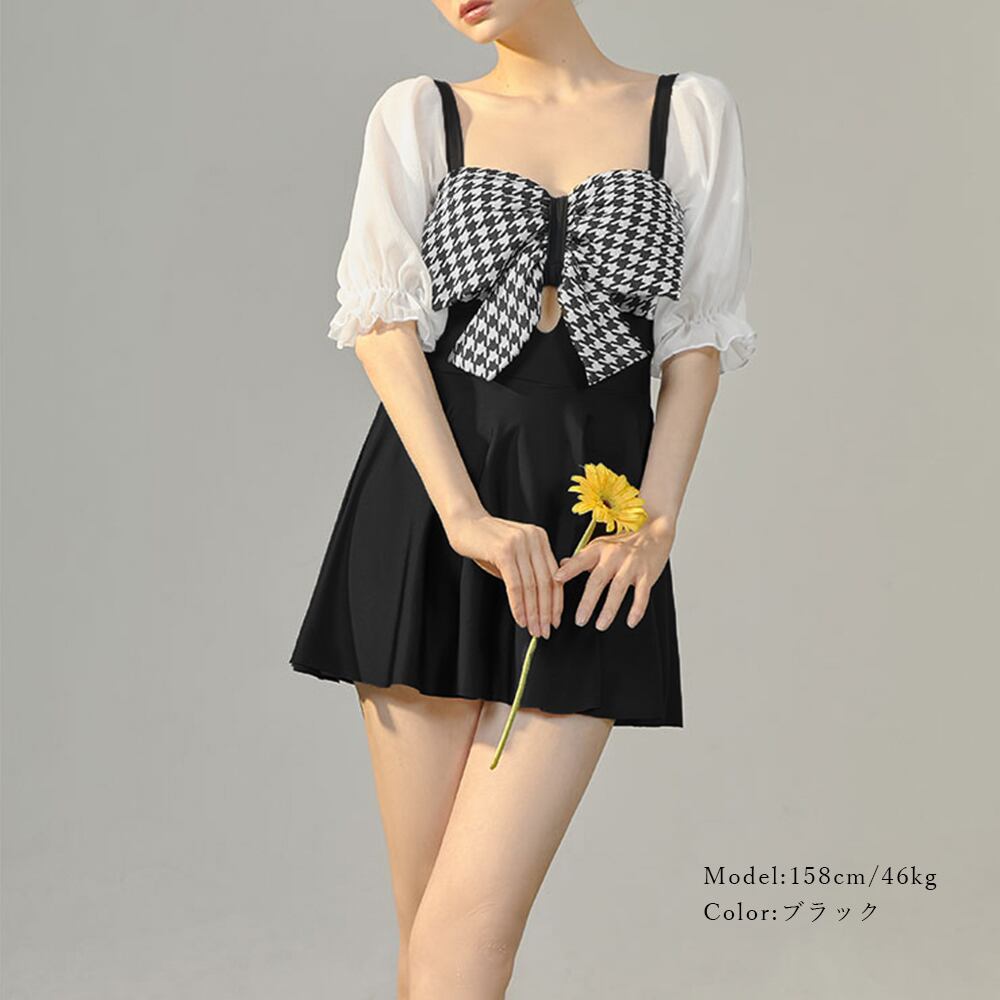 シフォンのパフスリーブがキュートなワンピース水着