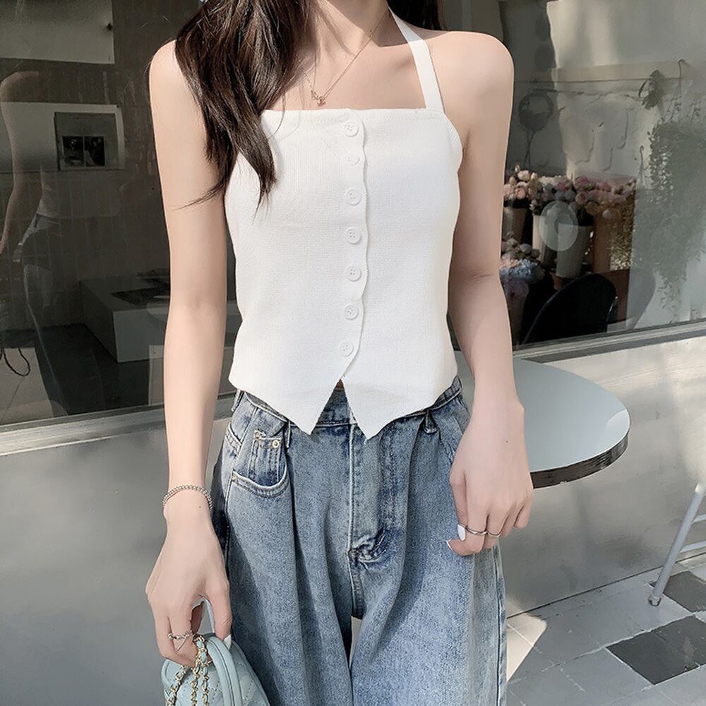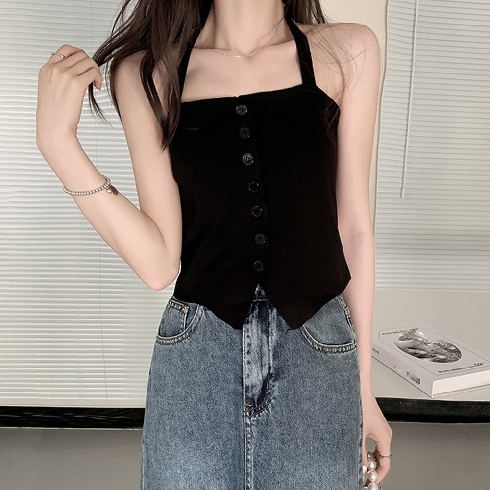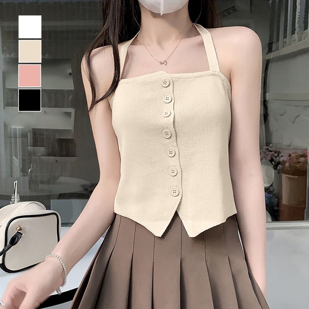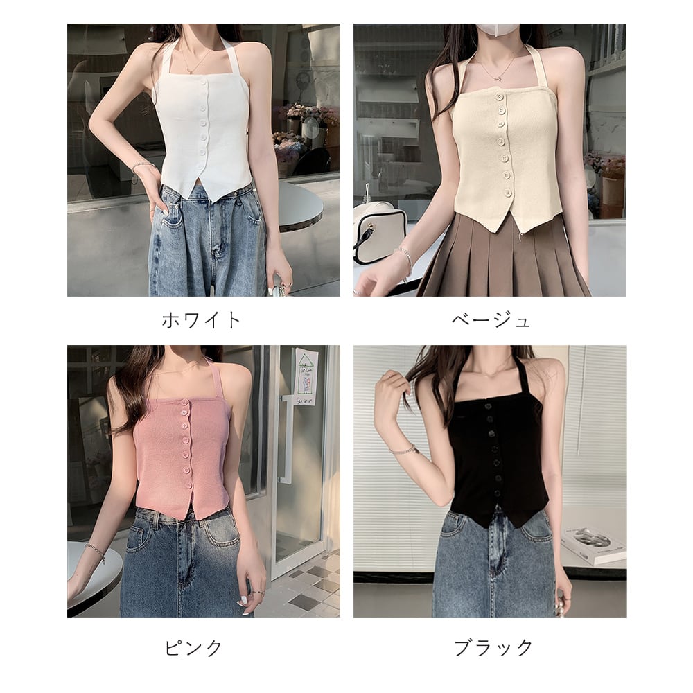 セクシーながらも可愛さもあるホルターネックのニットキャミソール