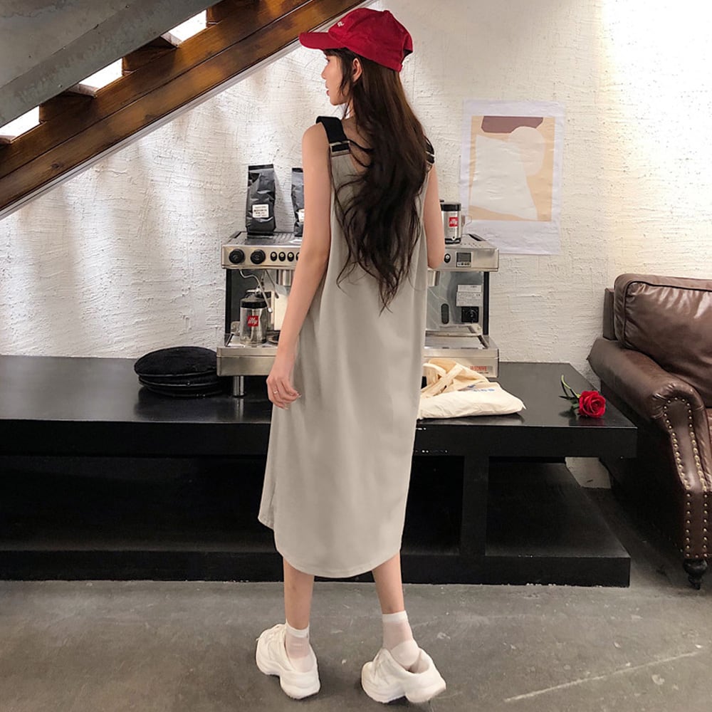 顔回りがすっきり見える前後Uネックデザインのジャンスカ