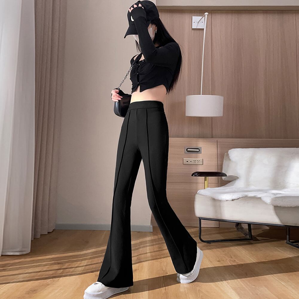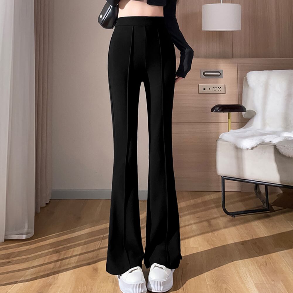 フロントに入ったセンターシームがスラっとキレイなシルエットを演出してくれるフレアパンツ