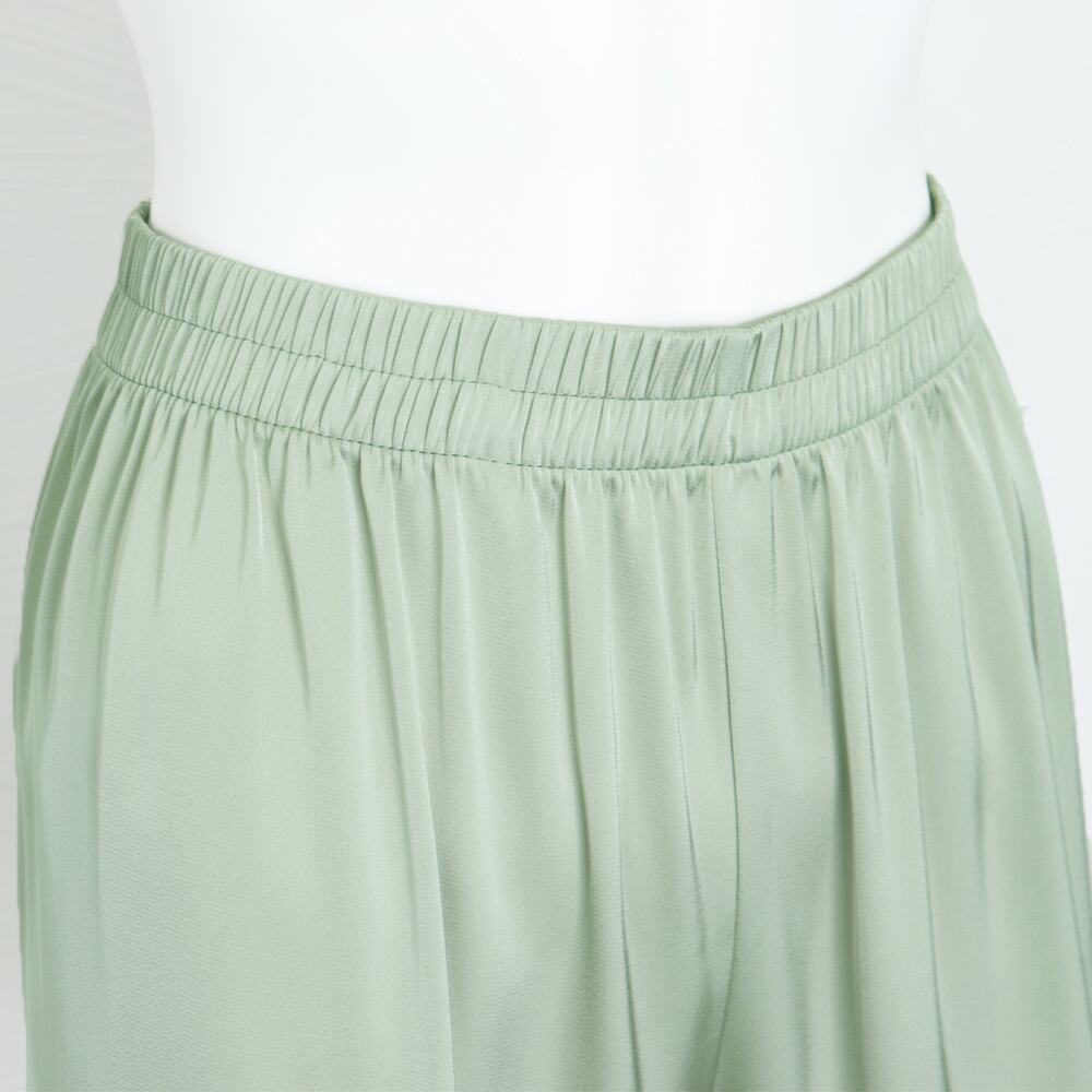 微光沢があり、ドレープ感のある滑らかな素材を使用したセミワイドパンツ
