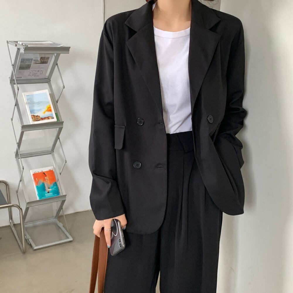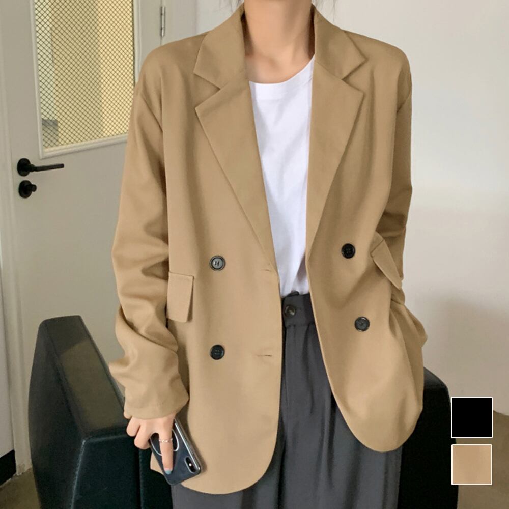 2列のボタンが並ぶデザインは、洗練されたシルエットでこなれた大人顔に