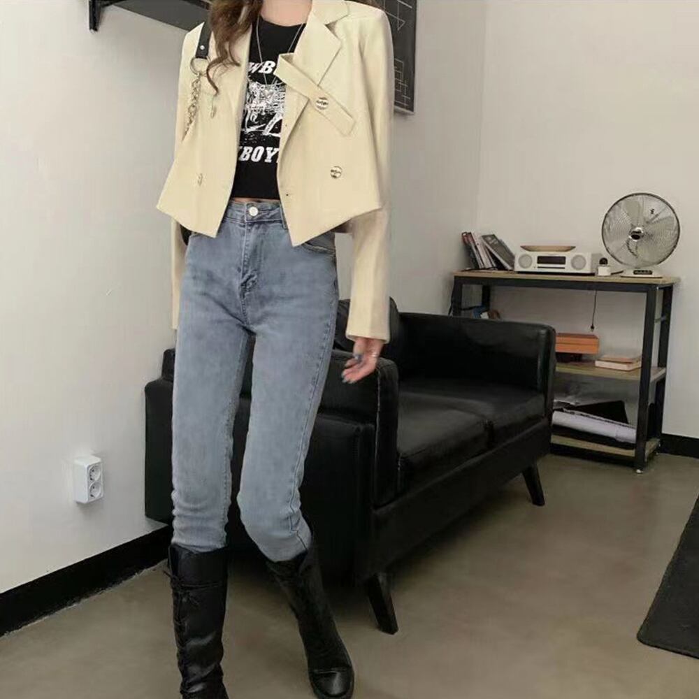 トレンドムード溢れるクロップド丈テーラードジャケット