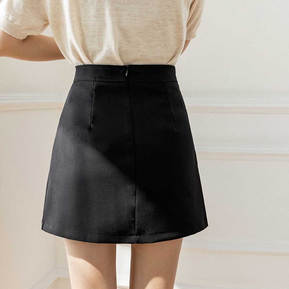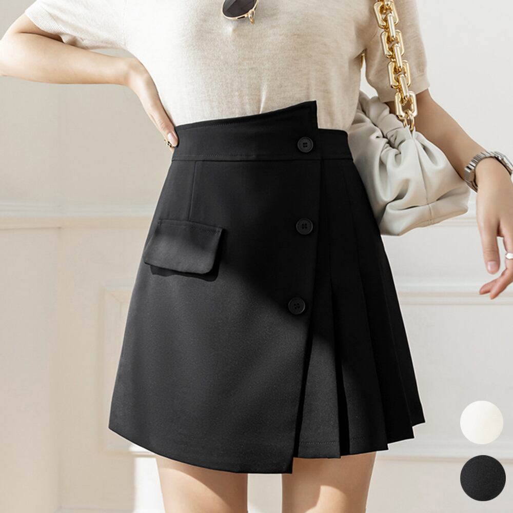 Aラインシルエットに、サイドにプリーツをあしらいましたミニスカート