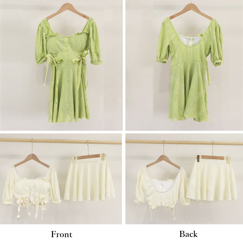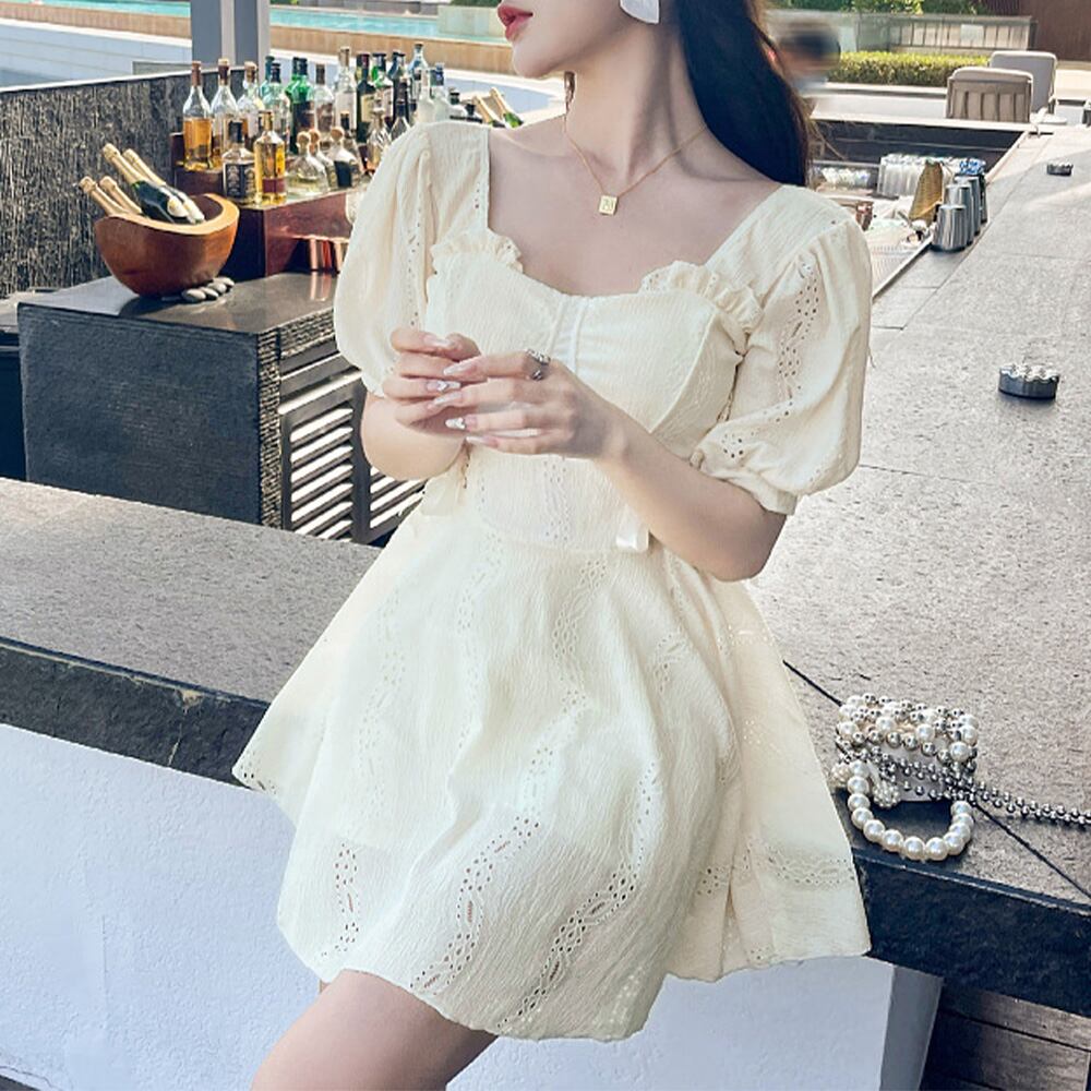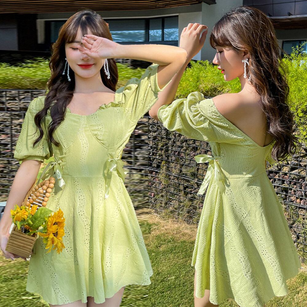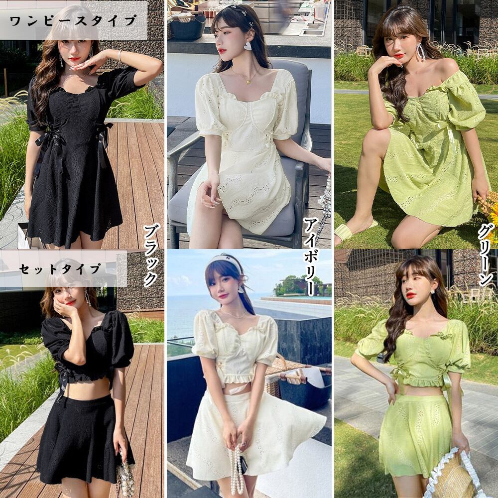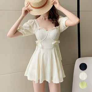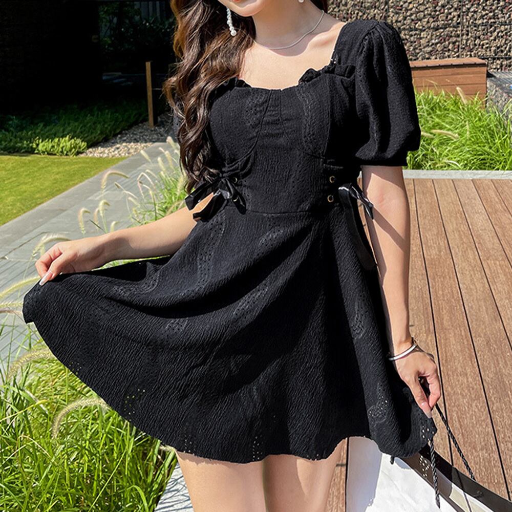 パフスリーブとウエスト両サイドにリボンをあしらった可愛い水着