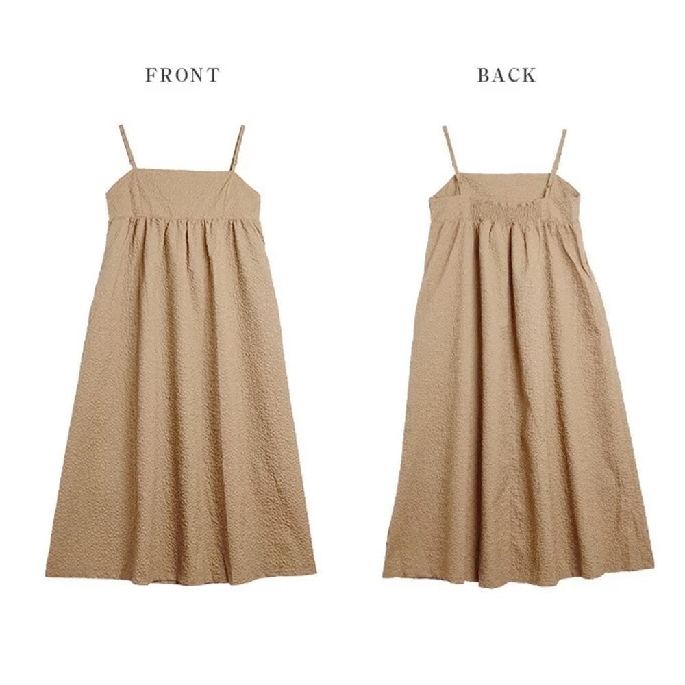 Aラインシルエットのシックな印象のキャミワンピース