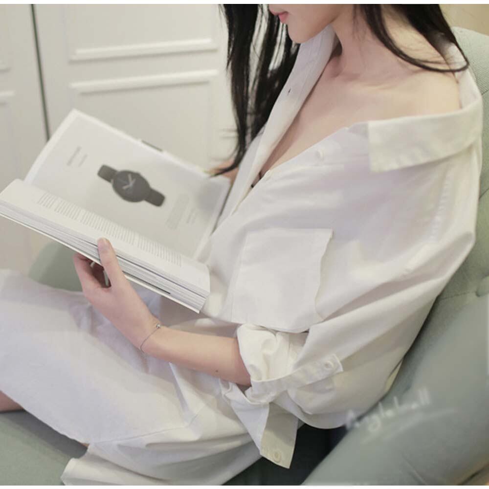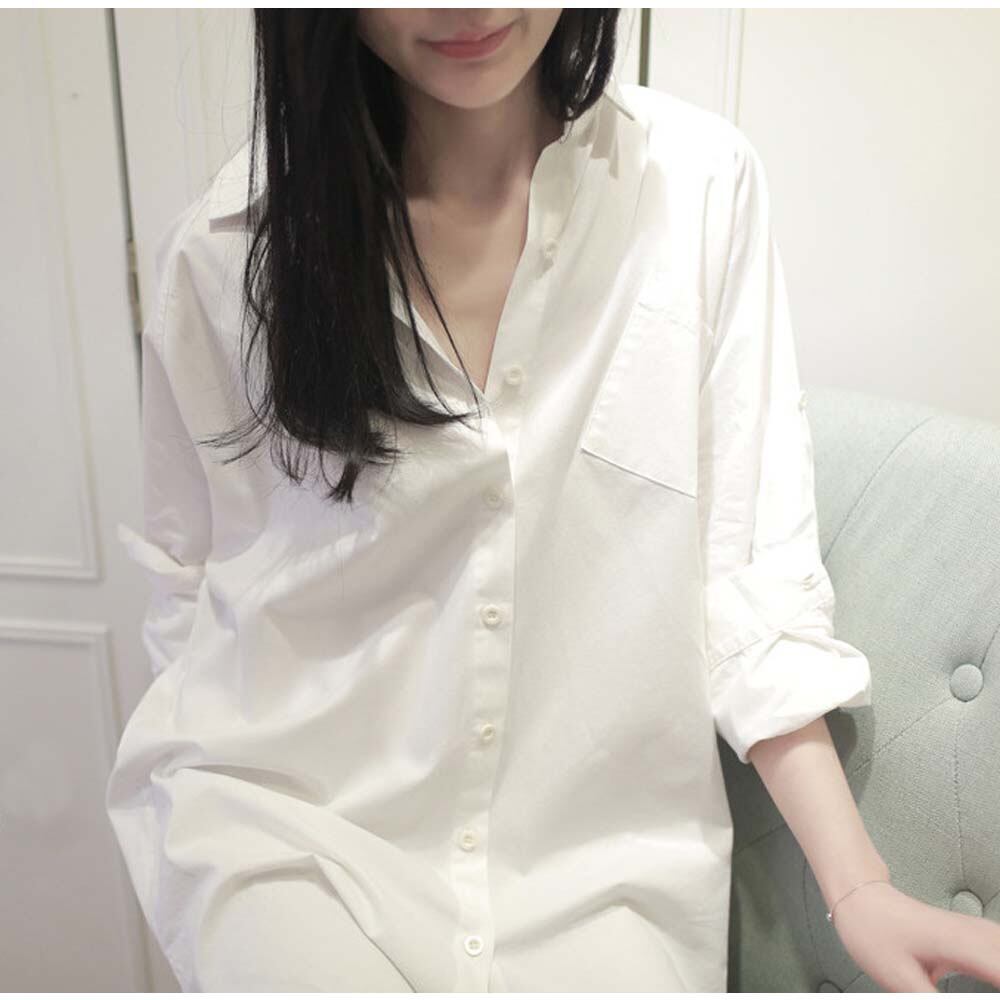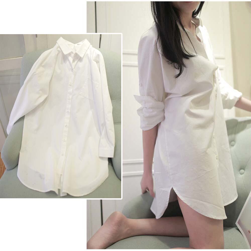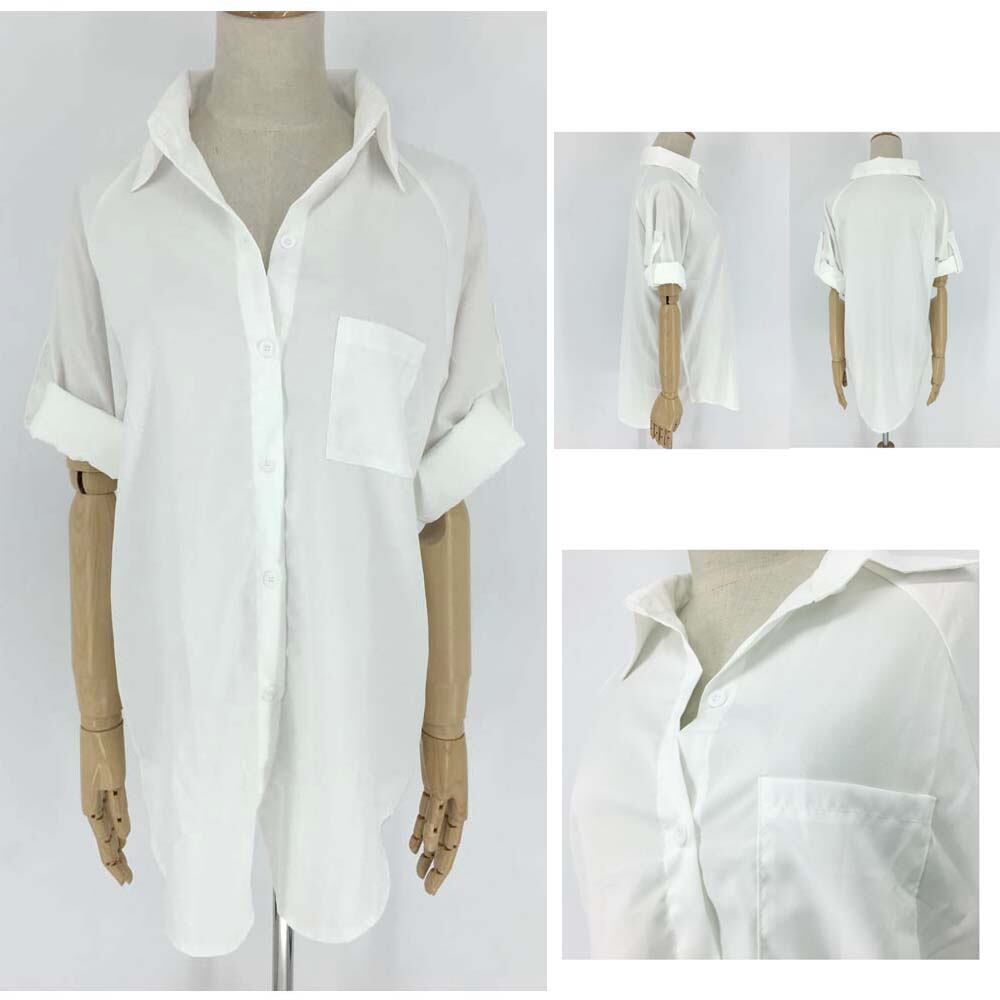 余計な装飾がなく、大人カジュアルな大きいサイズロング丈シャツ