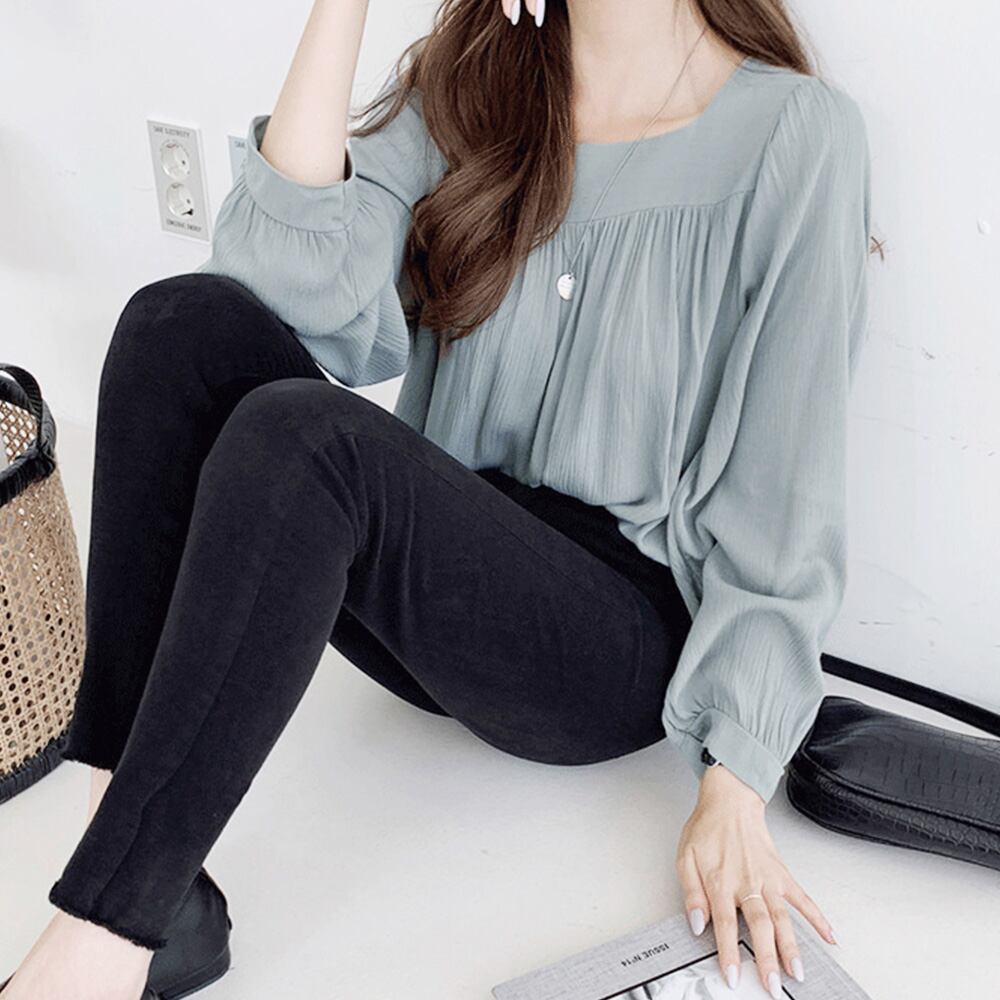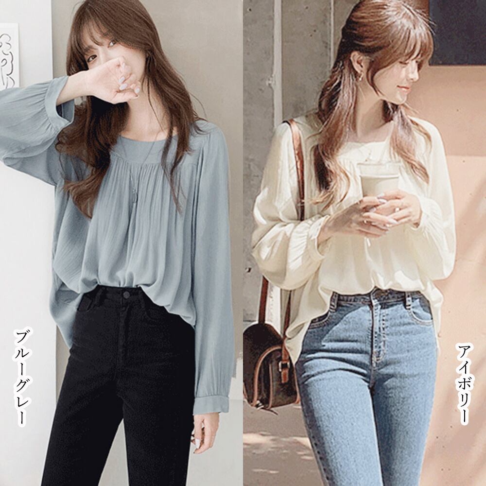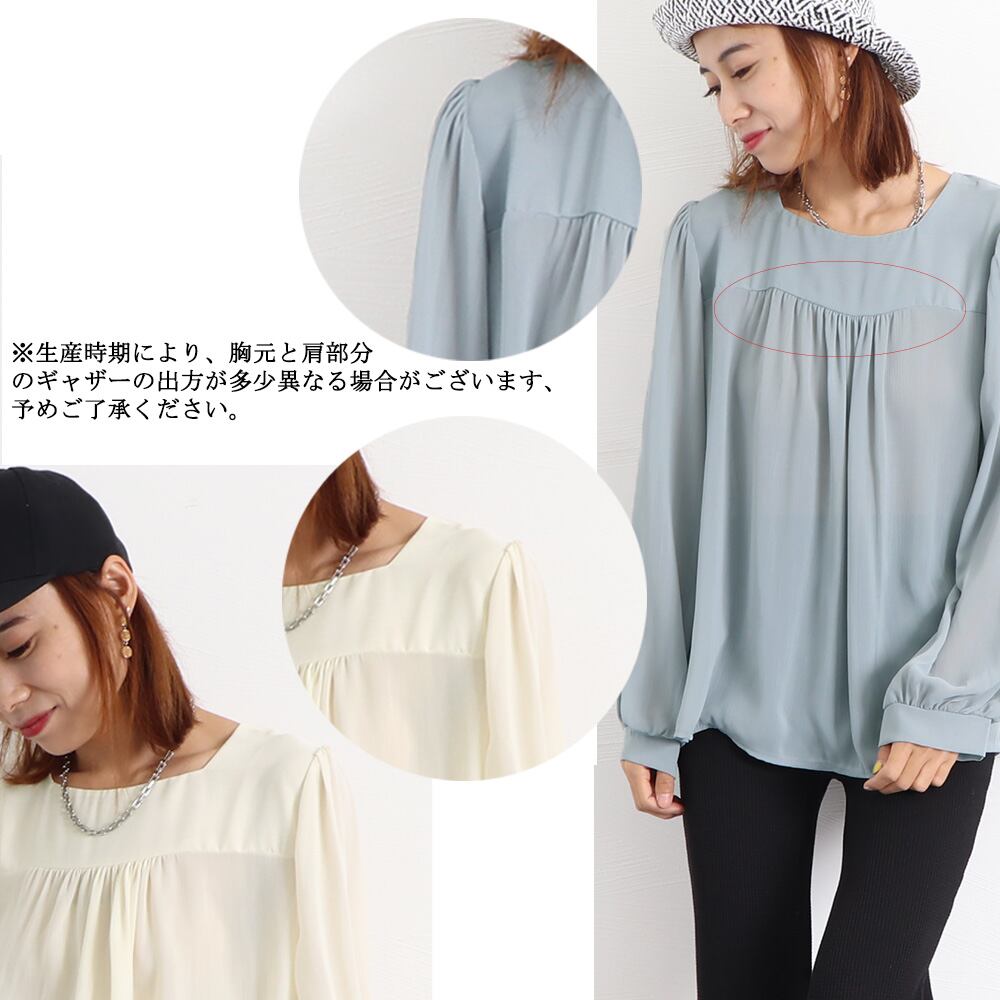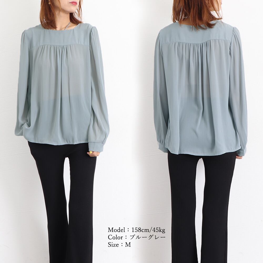 ふんわりとしたシルエットに透け感のあるシフォン素材で仕上げ長袖シャツブラウス