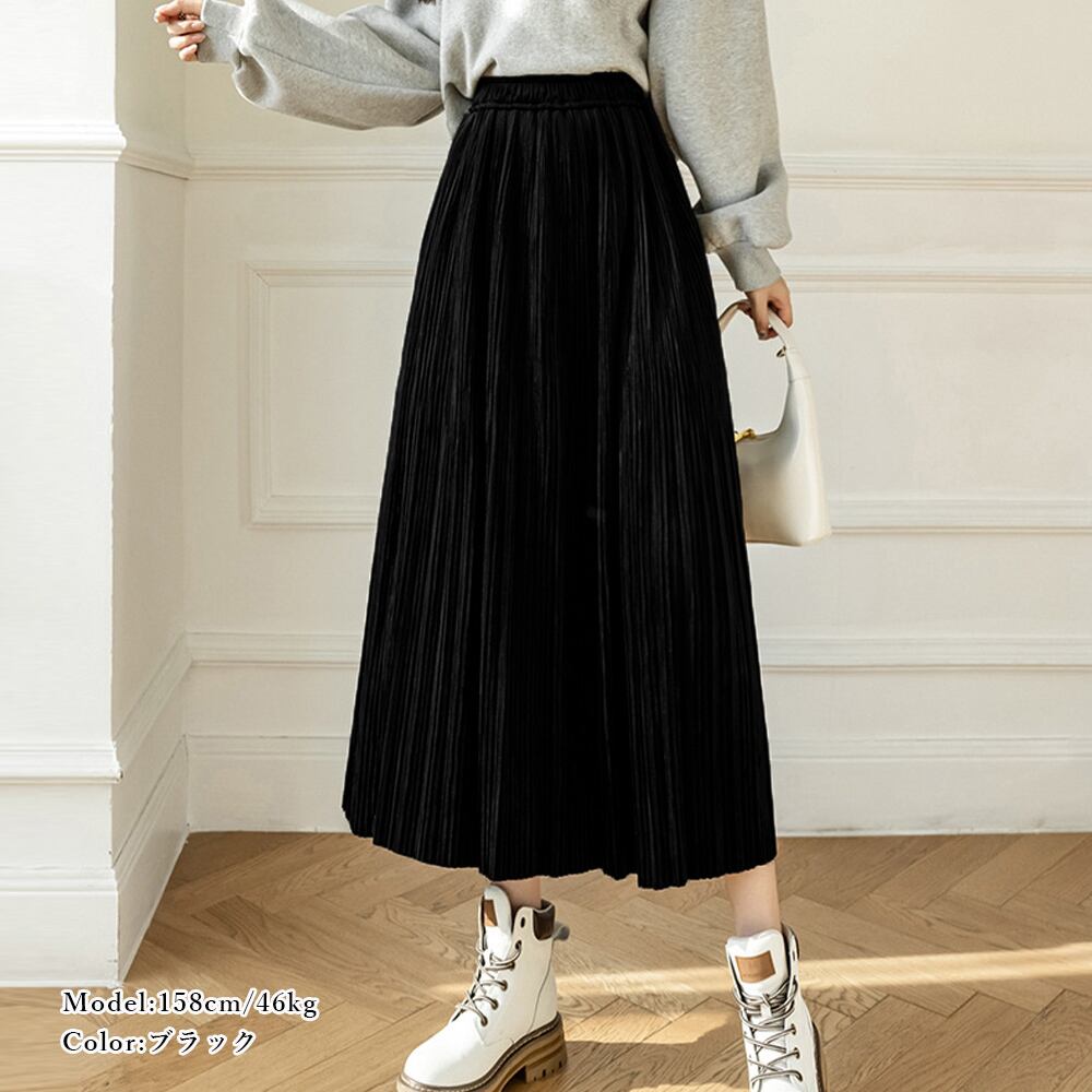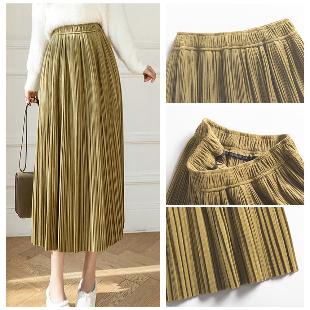 細かいプリーツデザイン、歩くたびに綺麗に広がるプリーツは女性らしさを演出するスカート