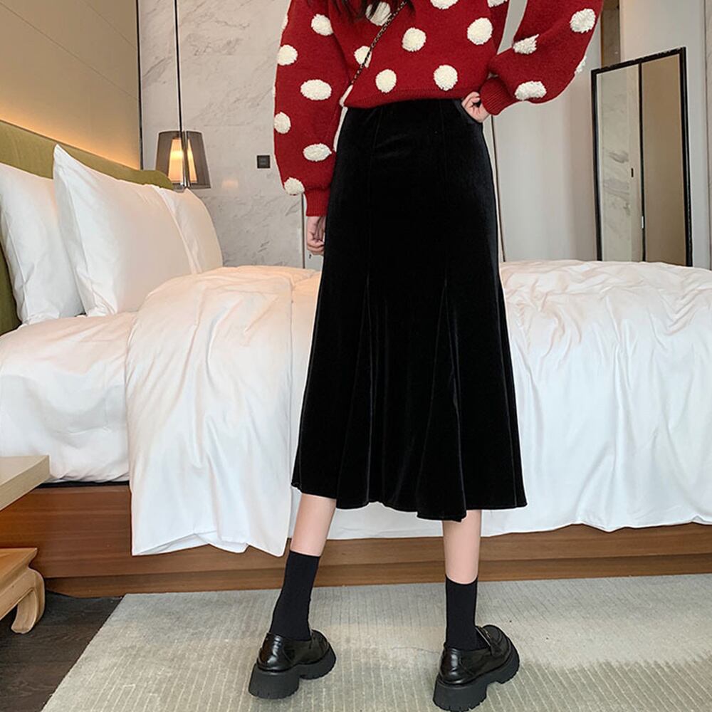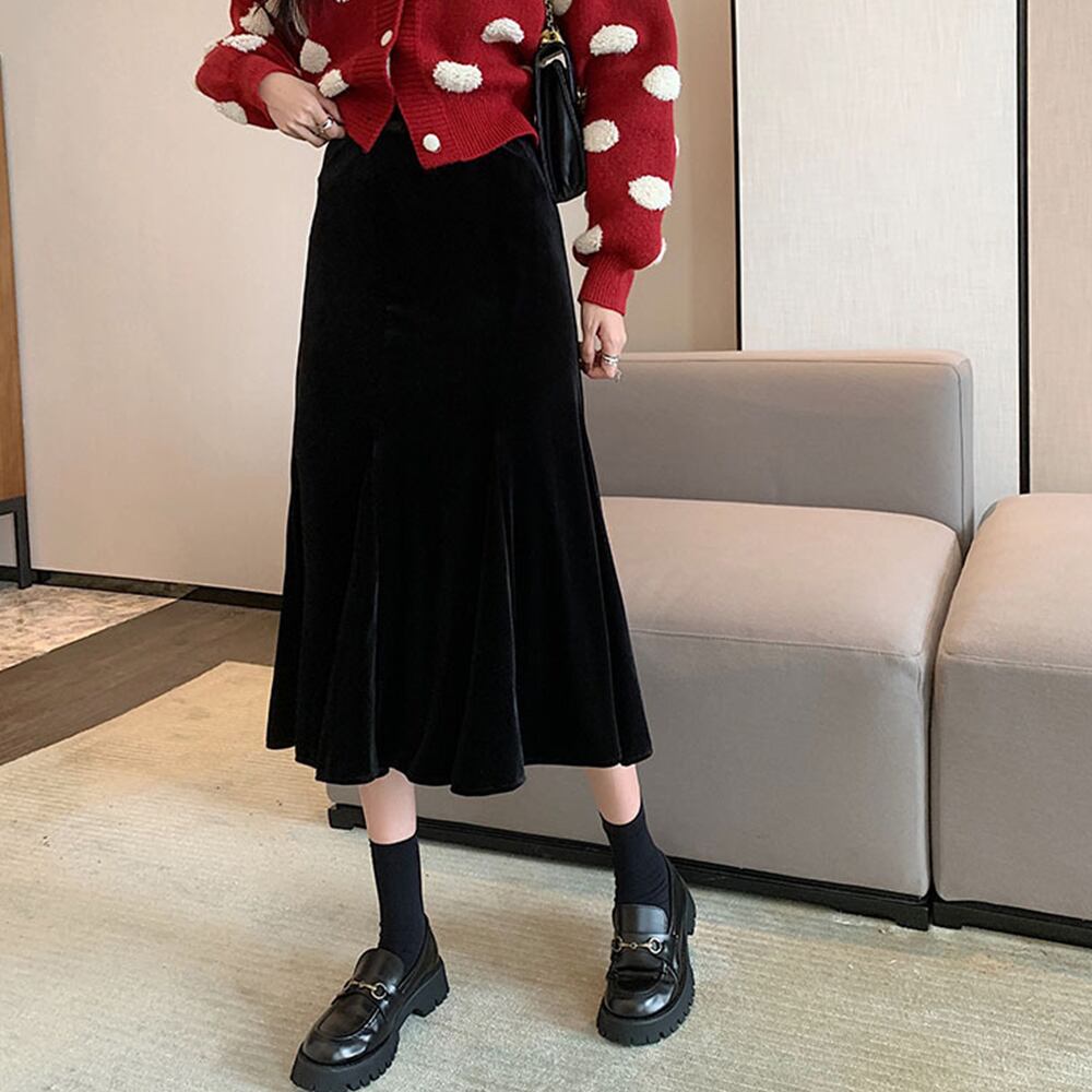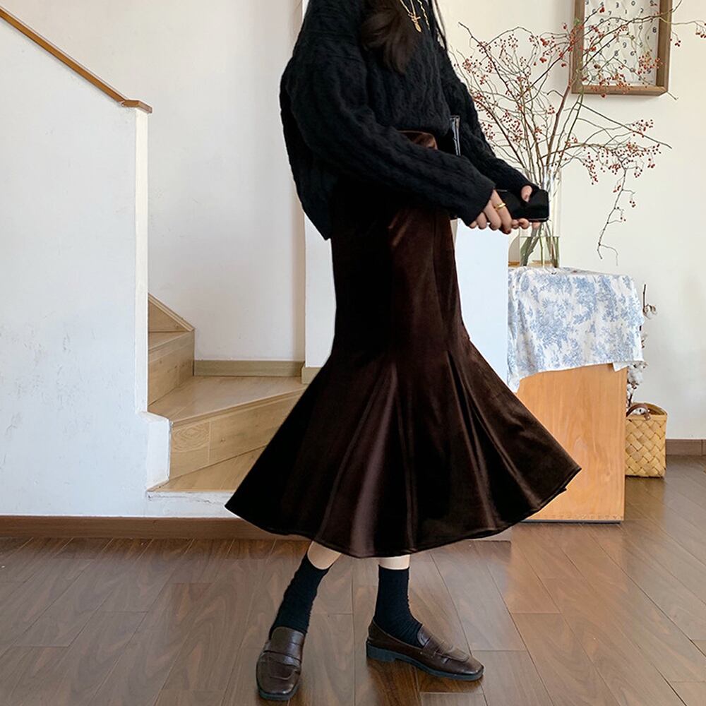 ベルベットのような光沢感が上品でトレンド感のあるマーメイドスカート
