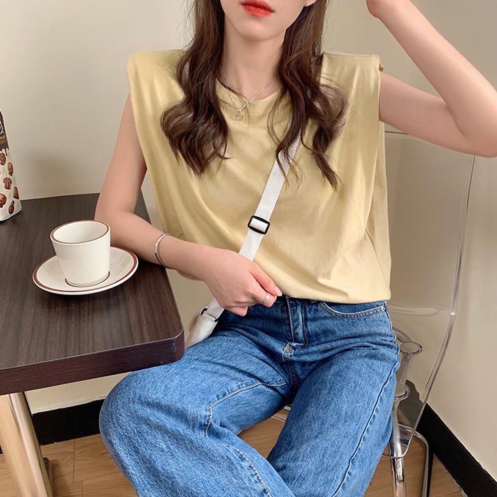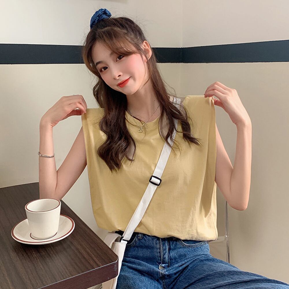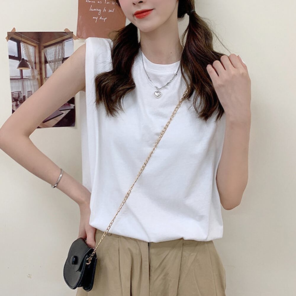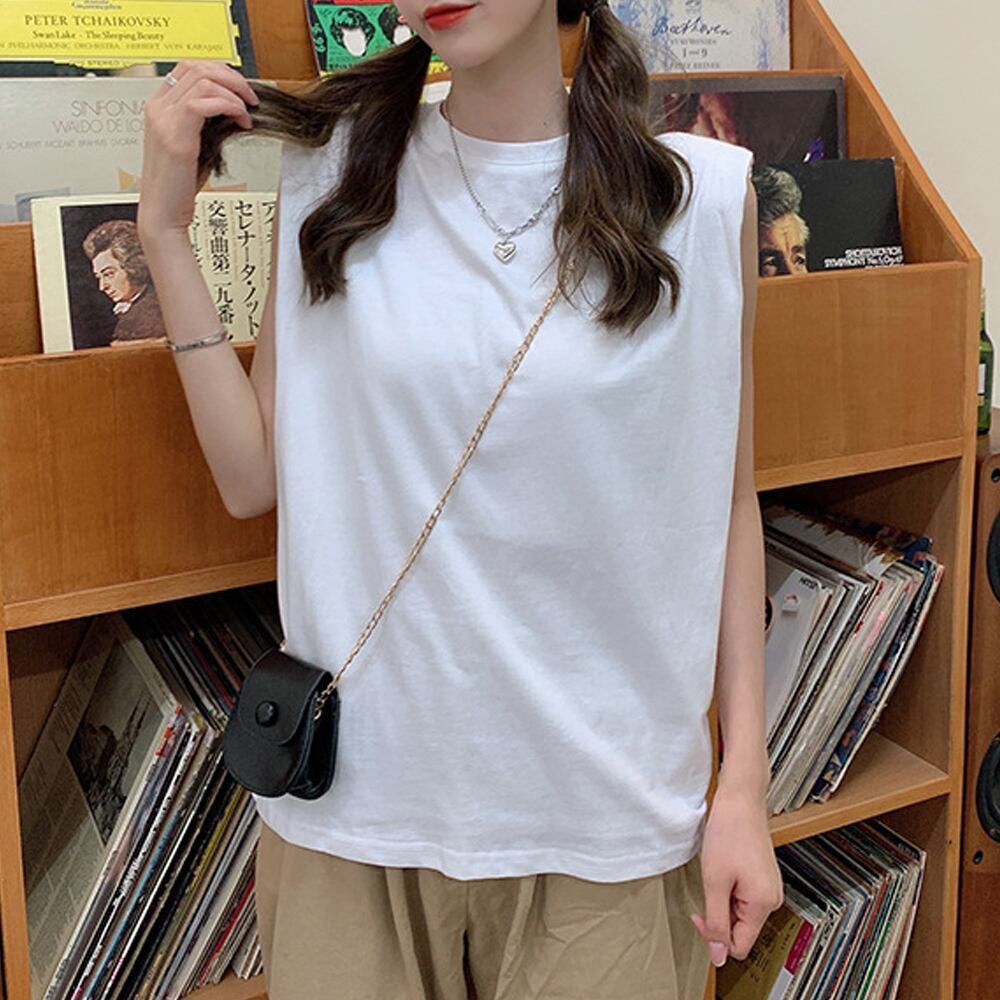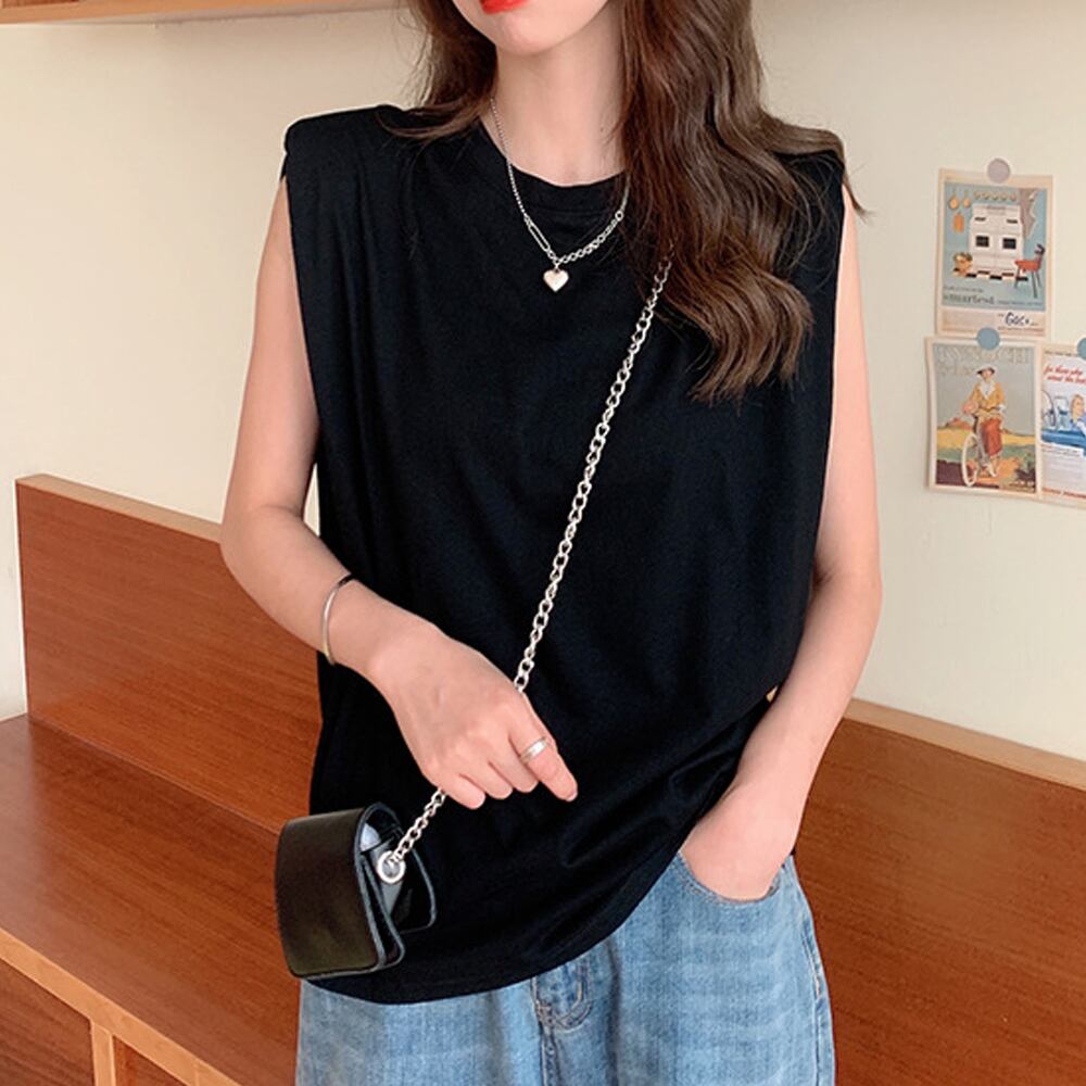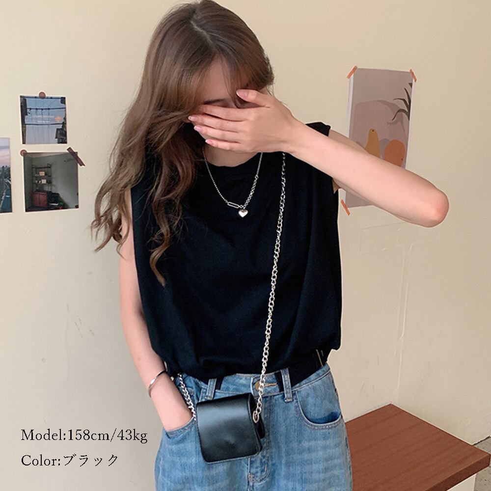 ゆったりシルエットでラフに着こなせるノースリーブカットソー