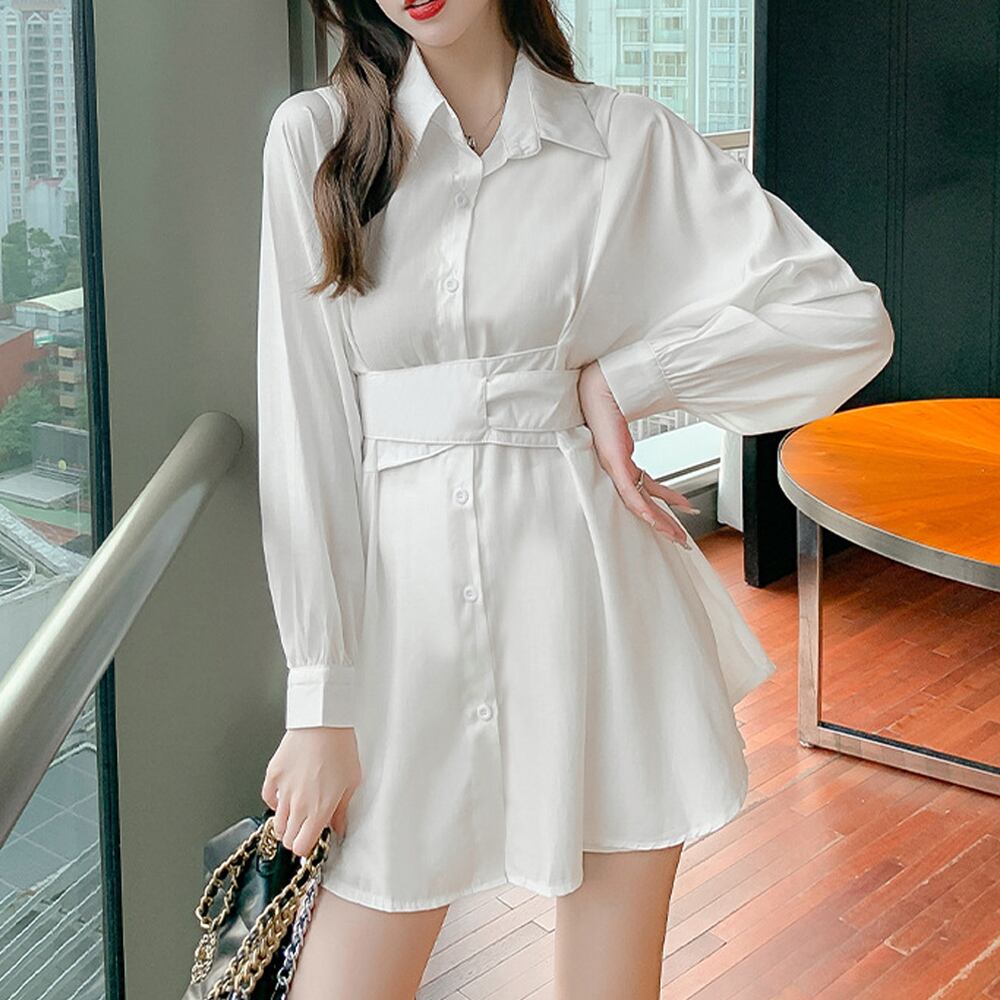 ウエストマークですっきりとしたボディラインを強調できるチュニックブラウス