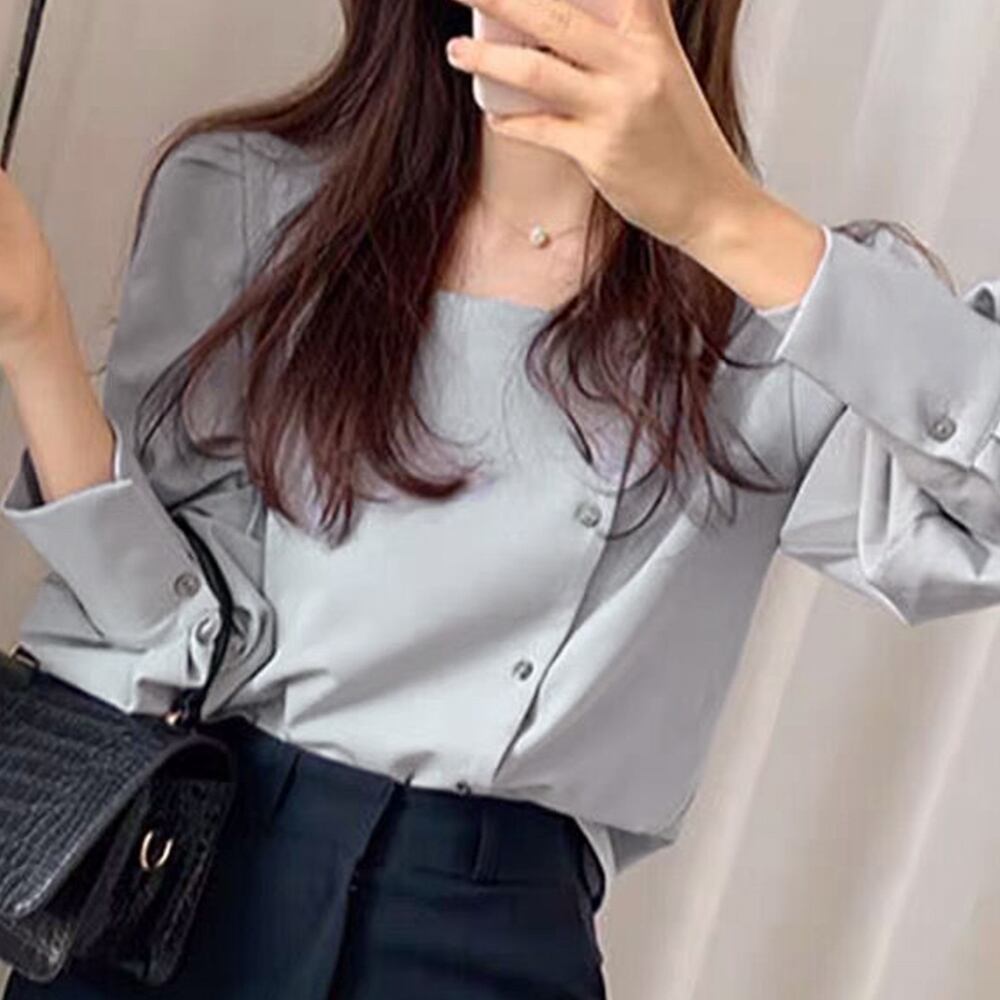 落ち感のあるサラリとした肌触り長袖シャツブラウスが新登場です