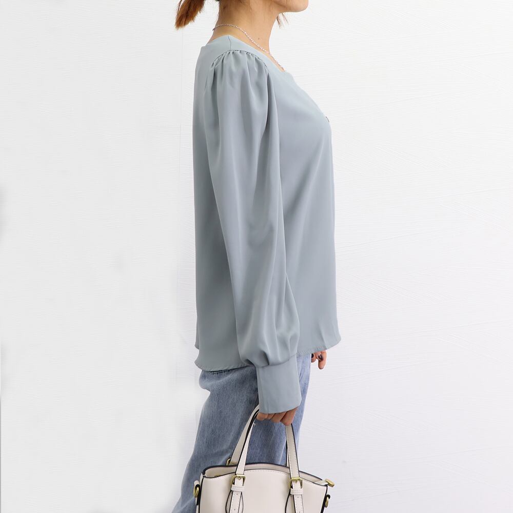 シンプルなデザインなので、パンツでもスカートでもボトムスを選ばず、色々なテイストにスタイリングして頂けます、オフィスでもプライベートでも着用できます