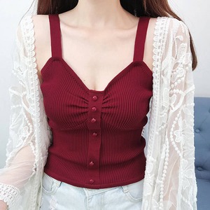 バスト部にギャザーデザインが入り、立体感を出すサマーニットキャミソール