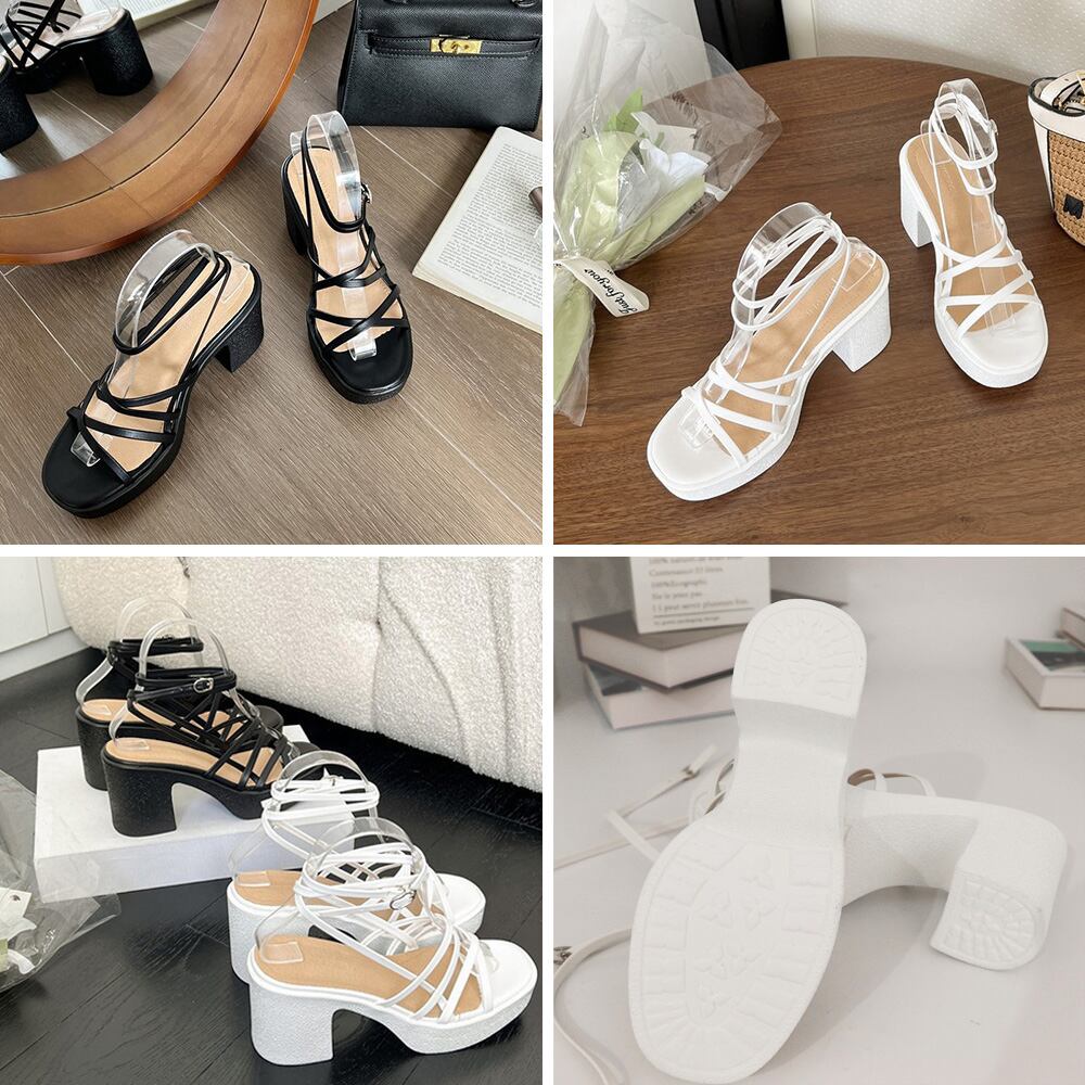流行の太ヒールだから、高ヒールでも足が痛くなりにくい、楽チン&疲れないレディース厚底サンダル