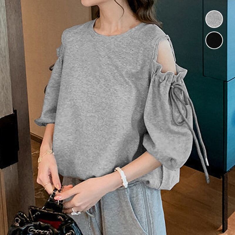 ボリュームのある袖はトレンド感を出しつつ、気になる二の腕もカバーしてくれる