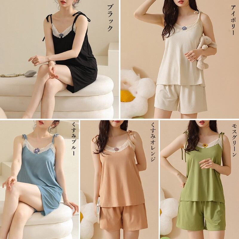 さらっと生地が心地良いキャミ&ショートパンツの部屋着セットアップ