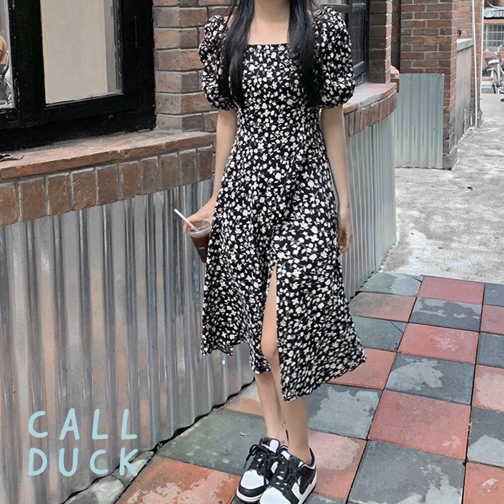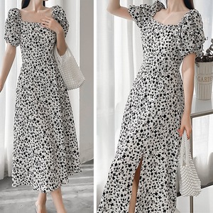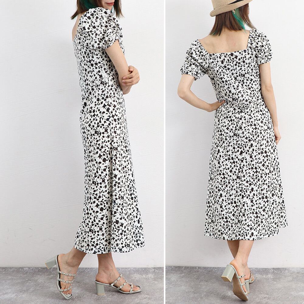 小花柄が春夏らしいスクエアネック半袖ワンピース