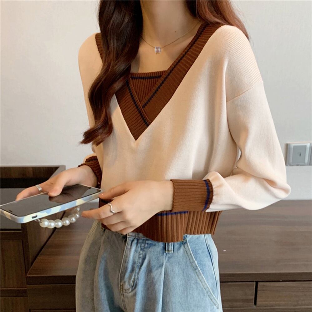 ほどよい肌見せで女性らしさ高まるレイヤード風ニットトップス