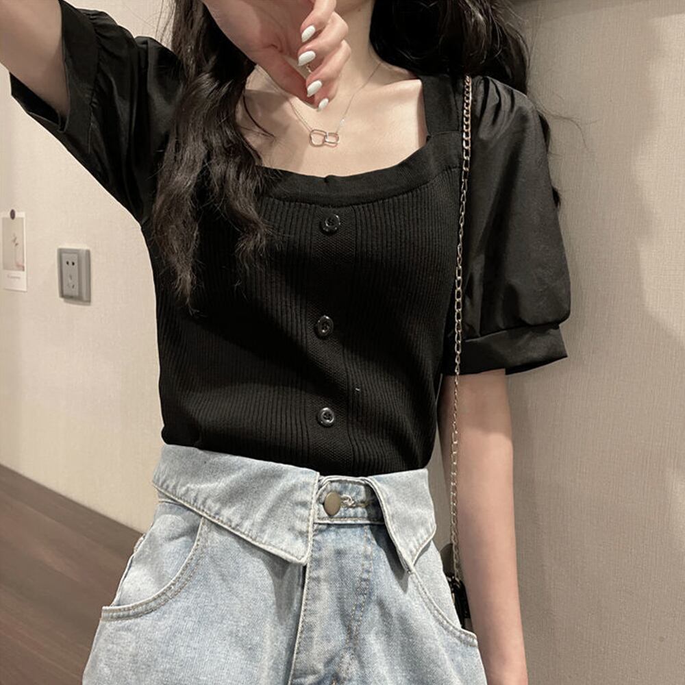 デコルテラインを美しく見せてくれるスクエアネックは暖かな季節にぴったりの1枚