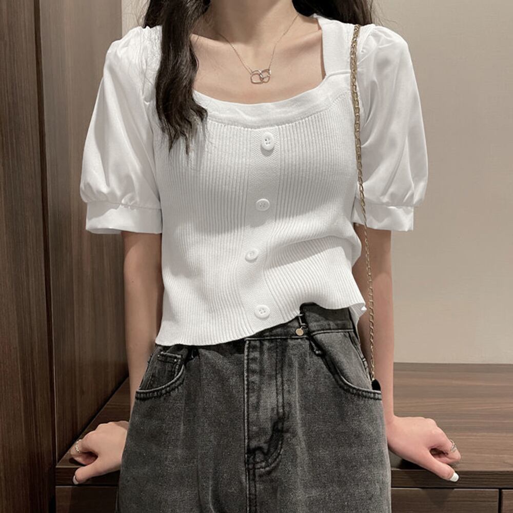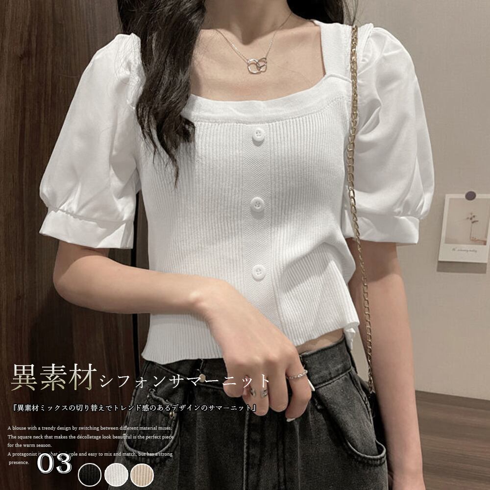 異素材ミックスの切り替えでトレンド感のあるデザインのサマーニット