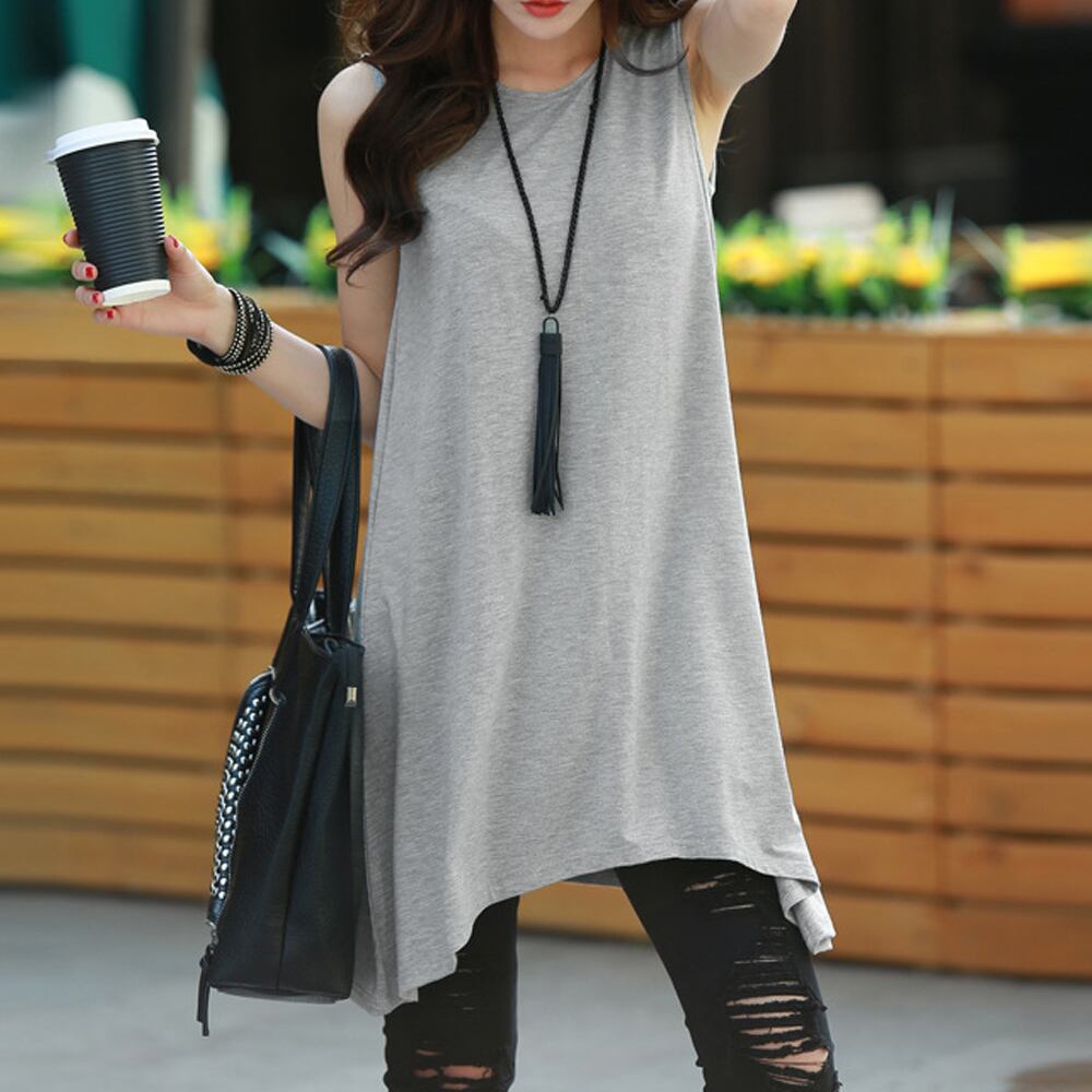 前後の丈が不規則なデザイン、体型カバーしながら女性らしい雰囲気に仕上げてくれるカットソーロングtシャツ
