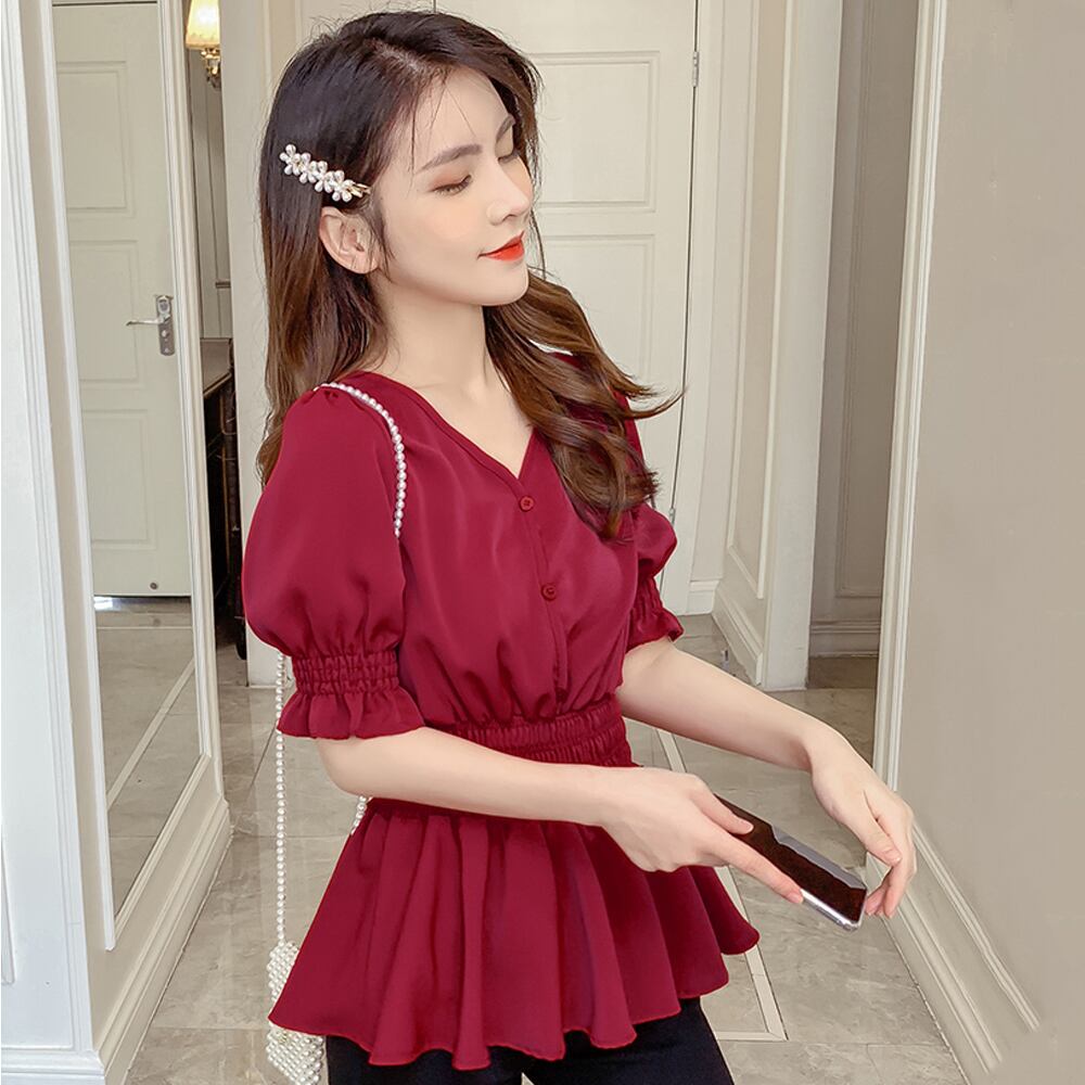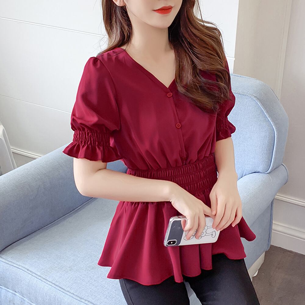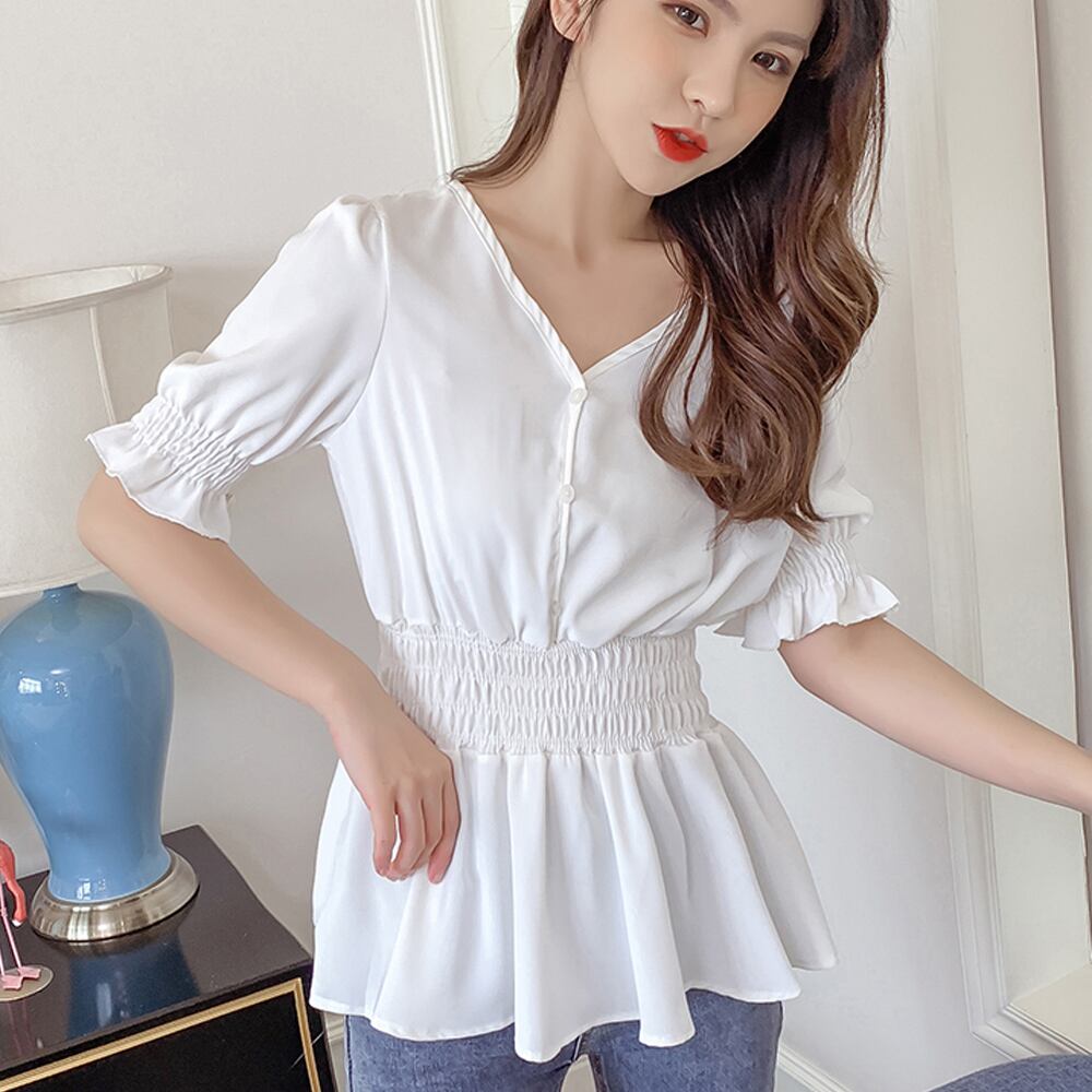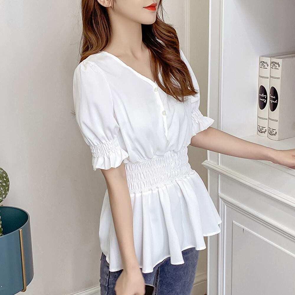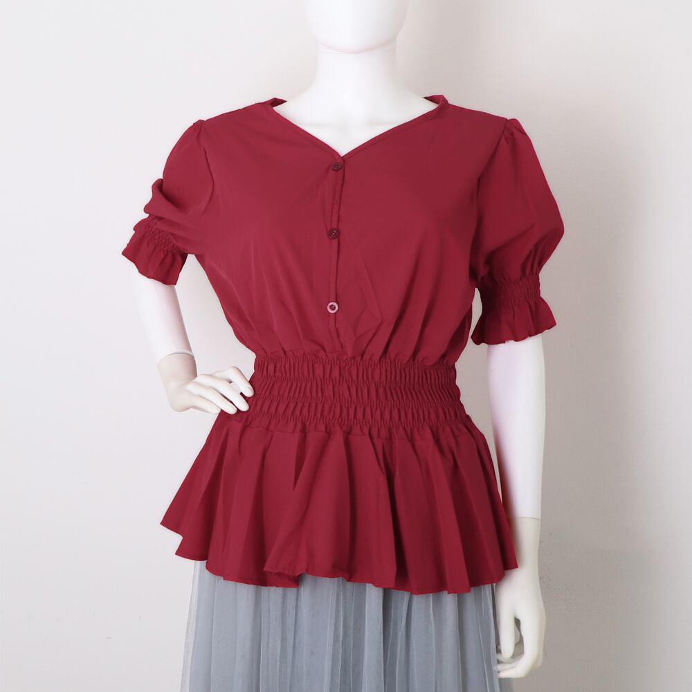 シャーリングデザインで、ウエストからヒップにかけてふんわりと広がるシルエットにスタイルUPも期待出来る