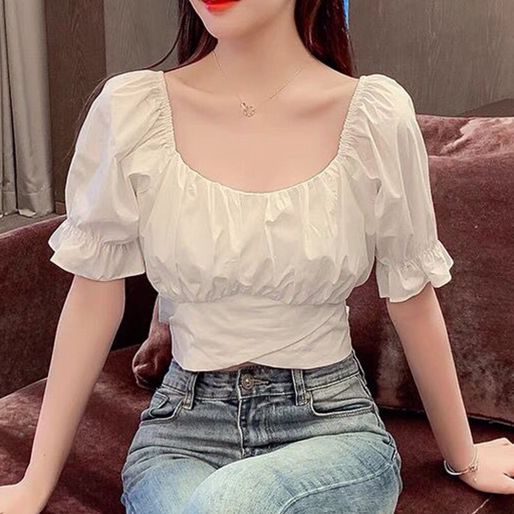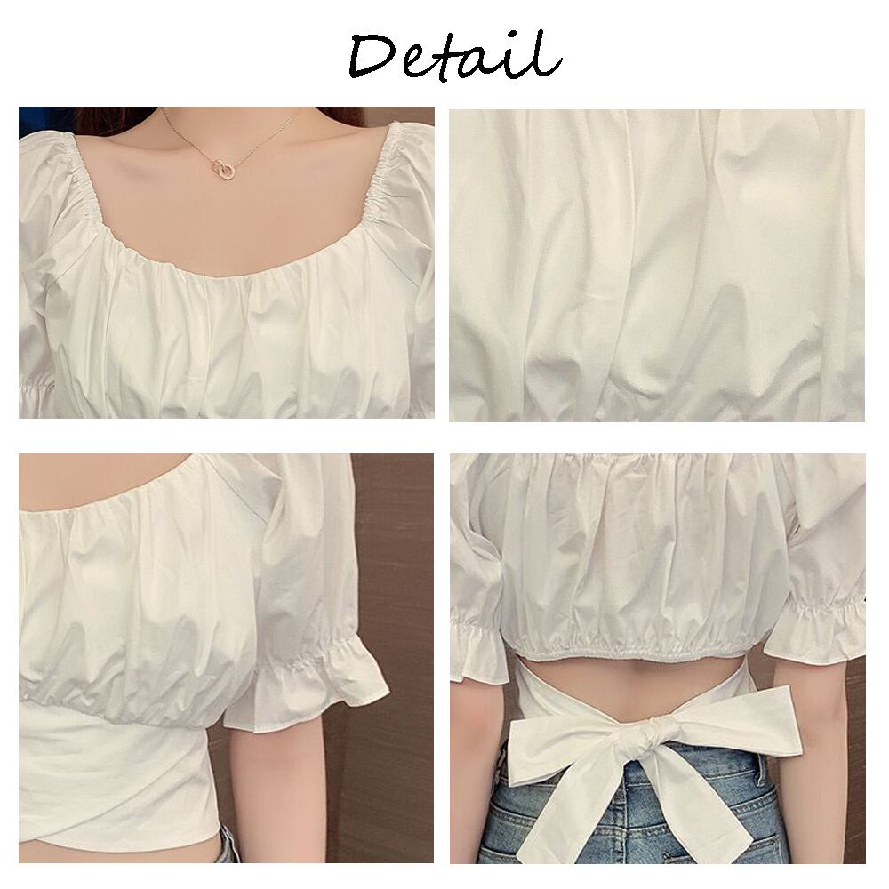 オープンバック仕様にリボン結びデザインがセクシーで可愛い半袖トップス