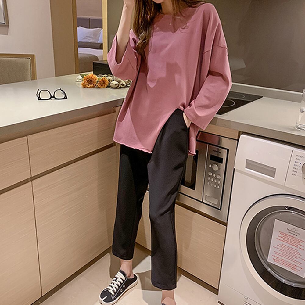 一見すると無難なシンプルtシャツですが、深めなスリットがあざと可愛く、カジュアルに着こなせちゃう
