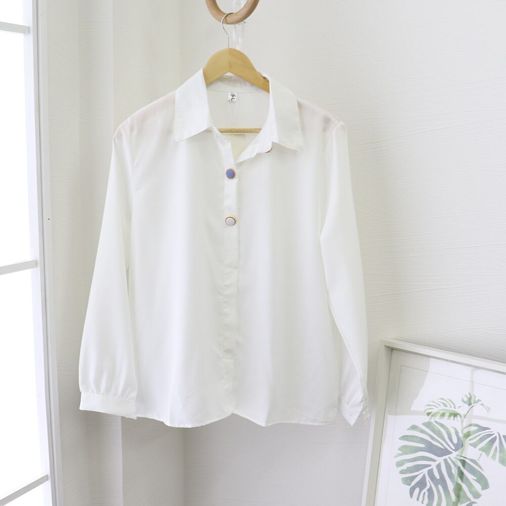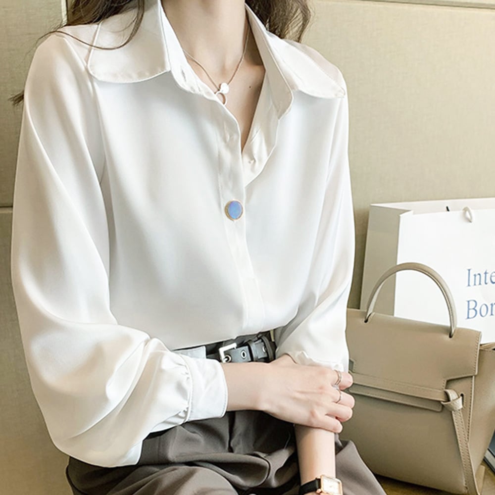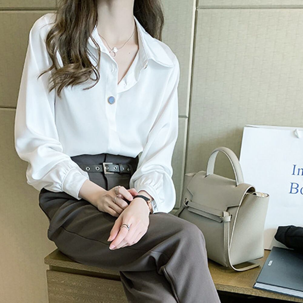 落ち感のあるサラリとした肌触り長袖スキッパーブラウス