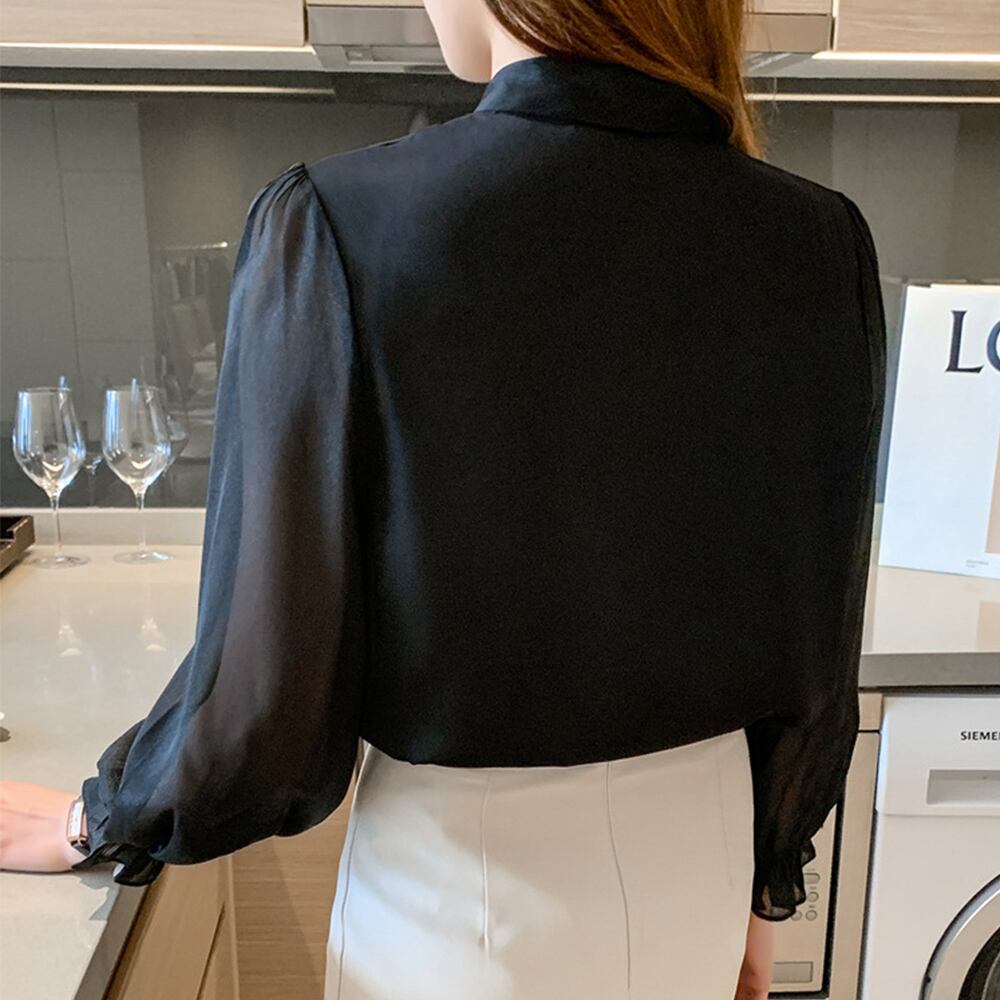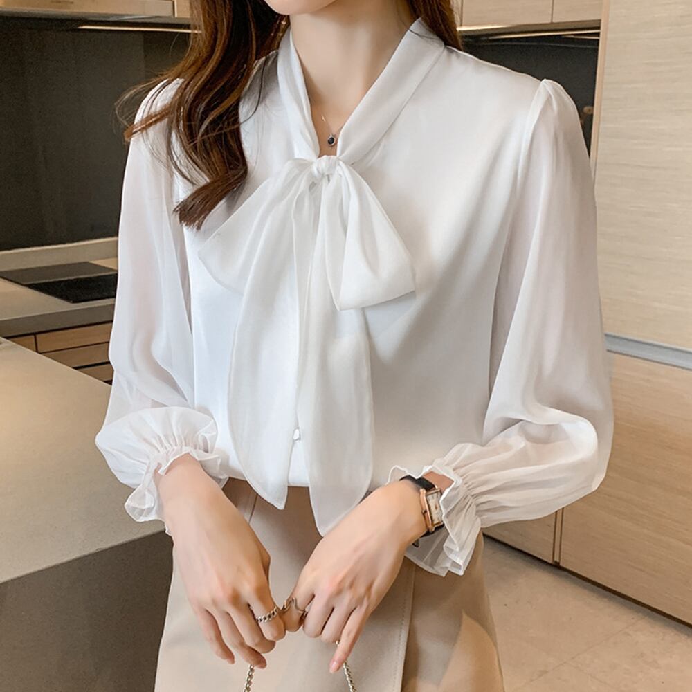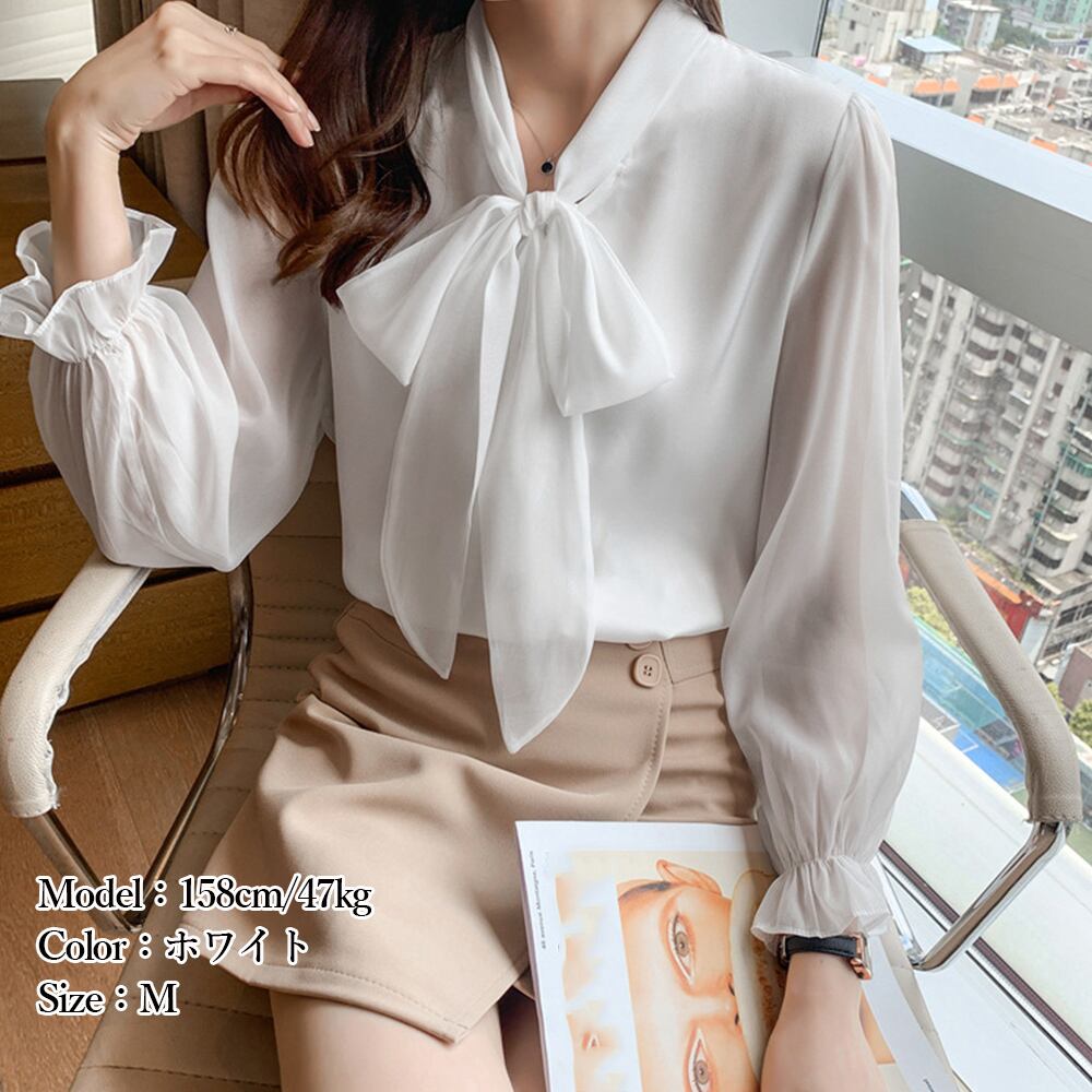 大きめのリボンが目を惹く、胸元を華やかに見せてくれる上品な透け感のあるボリュームブラウス