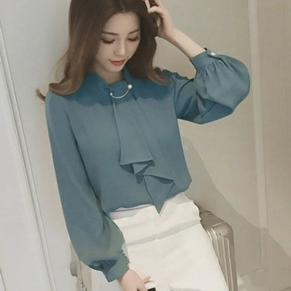 ボウタイ×胸元パールがアクセントの着映えブラウス