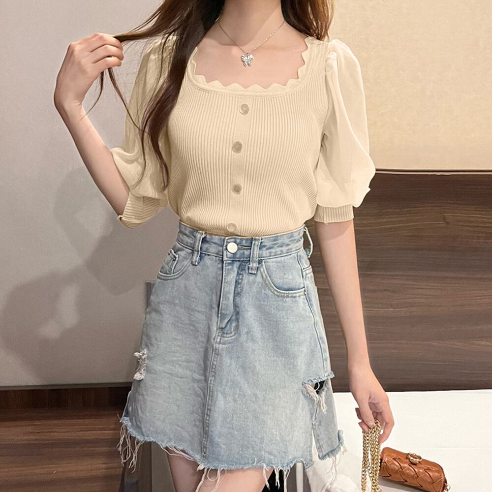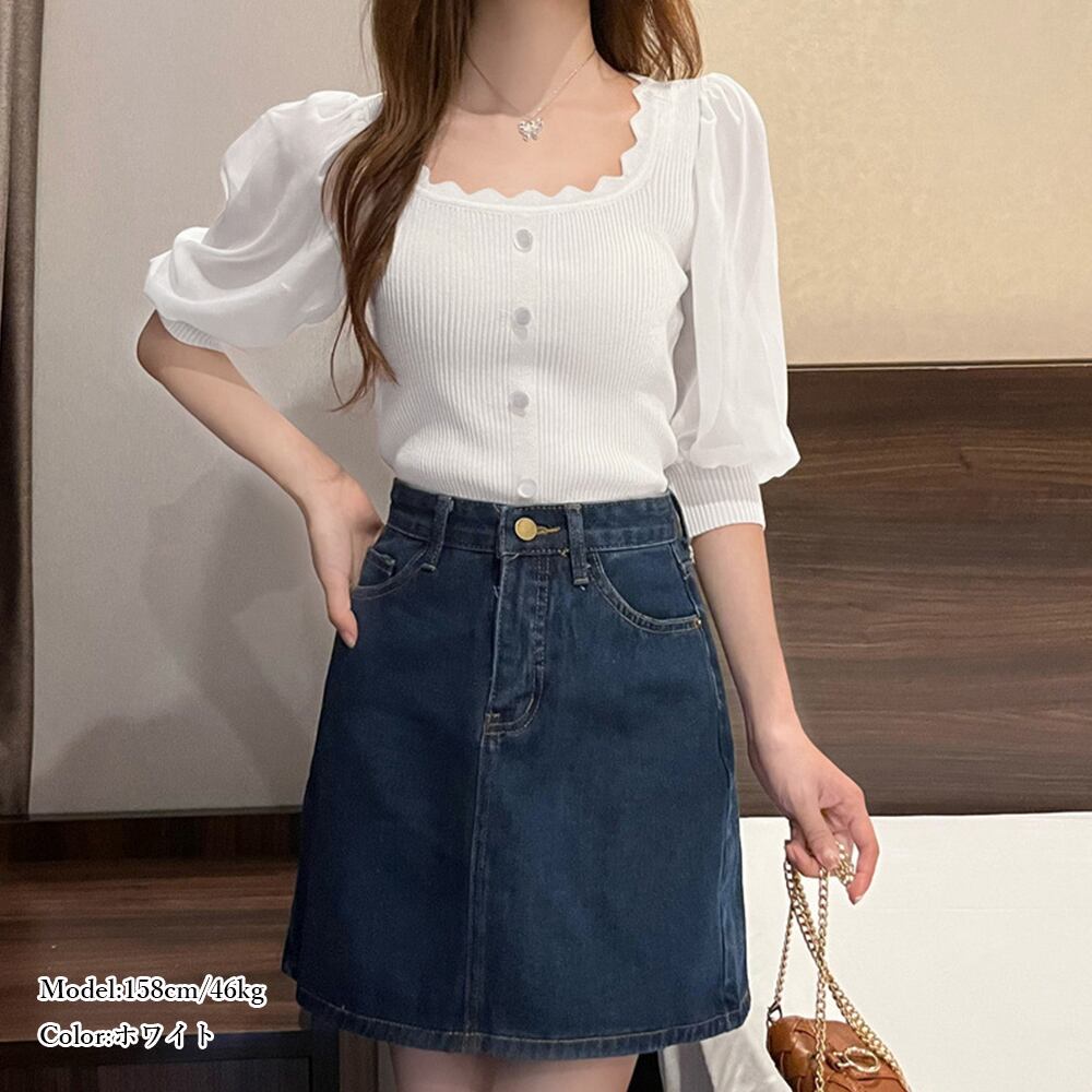 カジュアルなデニムパンツからフェミニンなシフォンスカートまで、幅広いボトムにマッチする着回し力抜群のアイテム