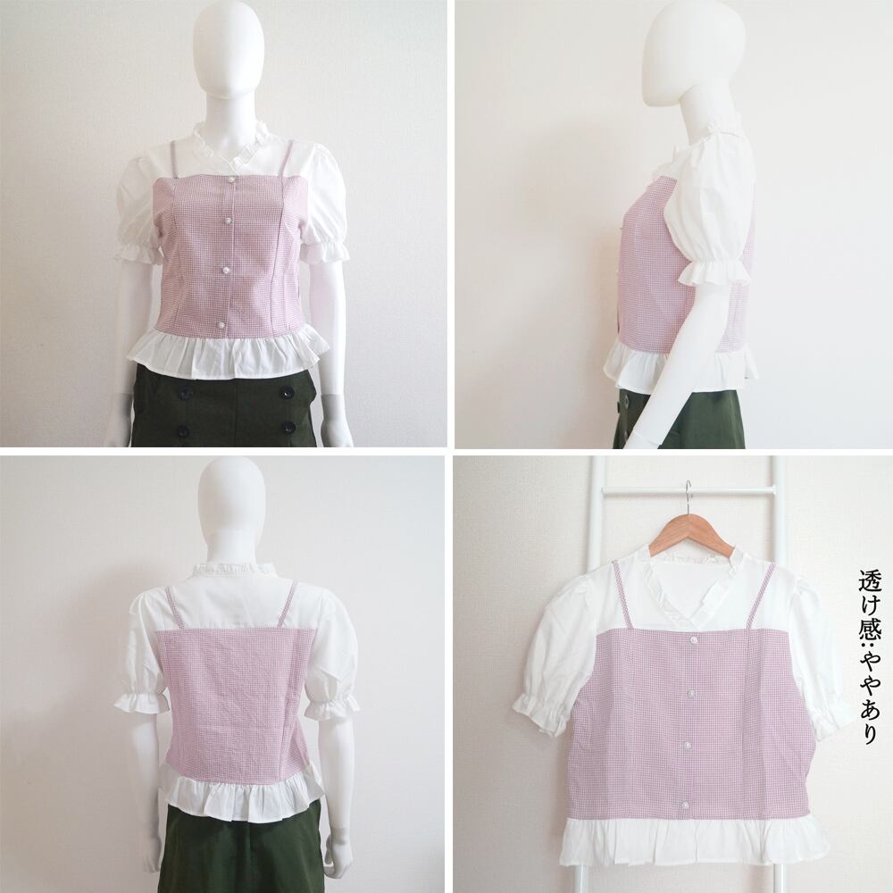 ネックと袖口のフリルデザインが可愛いシャツブラウス