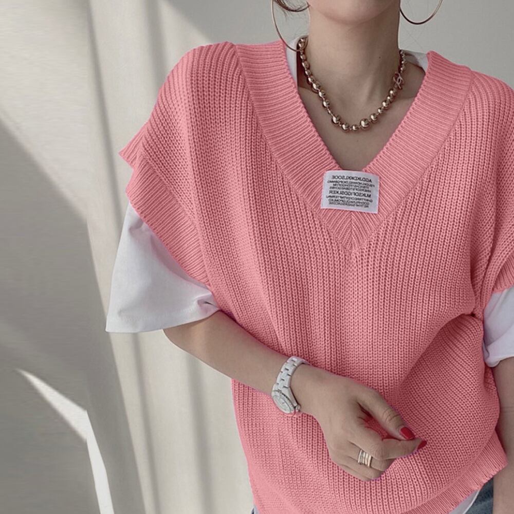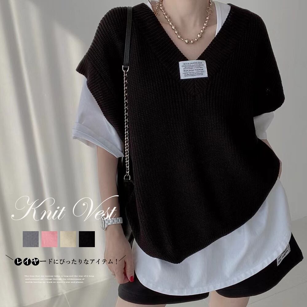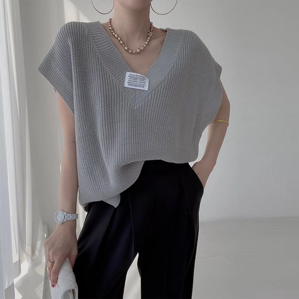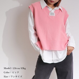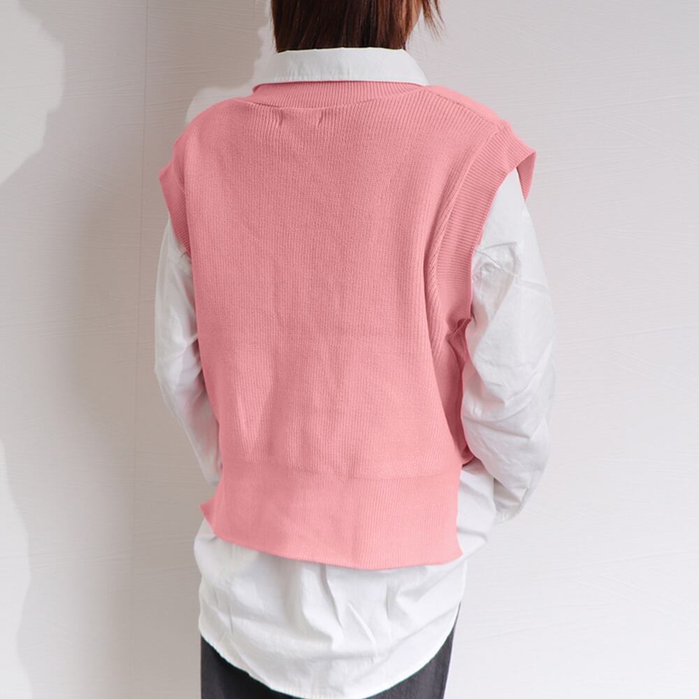 すっきりVネック仕様でデコルテラインを大人っぽくきれい魅せしてくれる畦編みニットベスト
