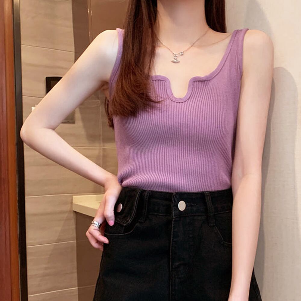 Uネックデザインで首回りを綺麗に魅せられるタンクトップ