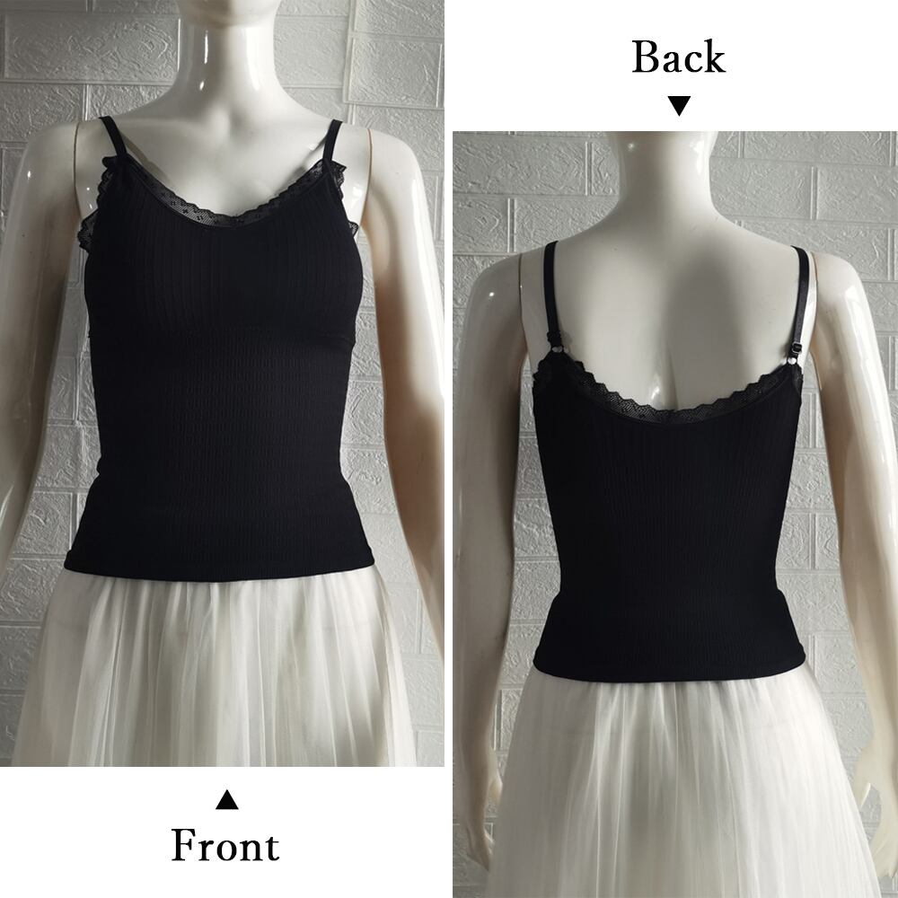 Vネックのラインがレイヤードしてもトップスに響きにくいのも魅力