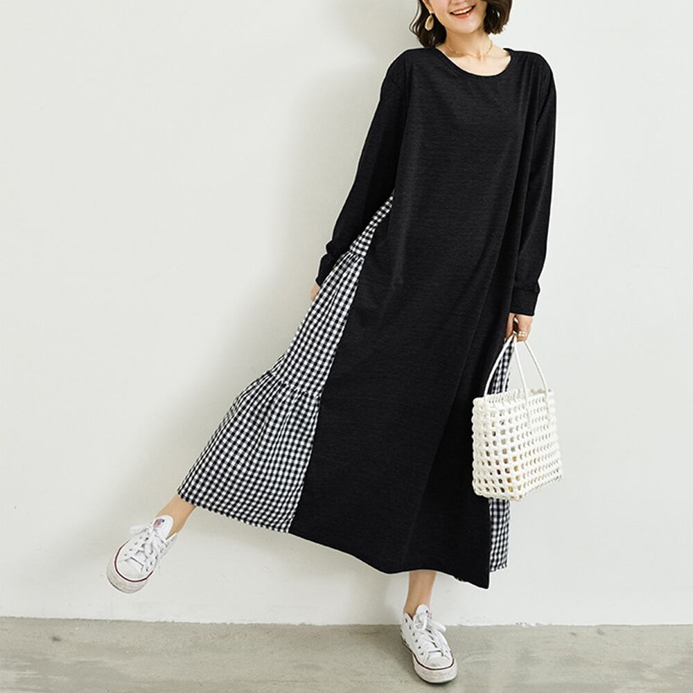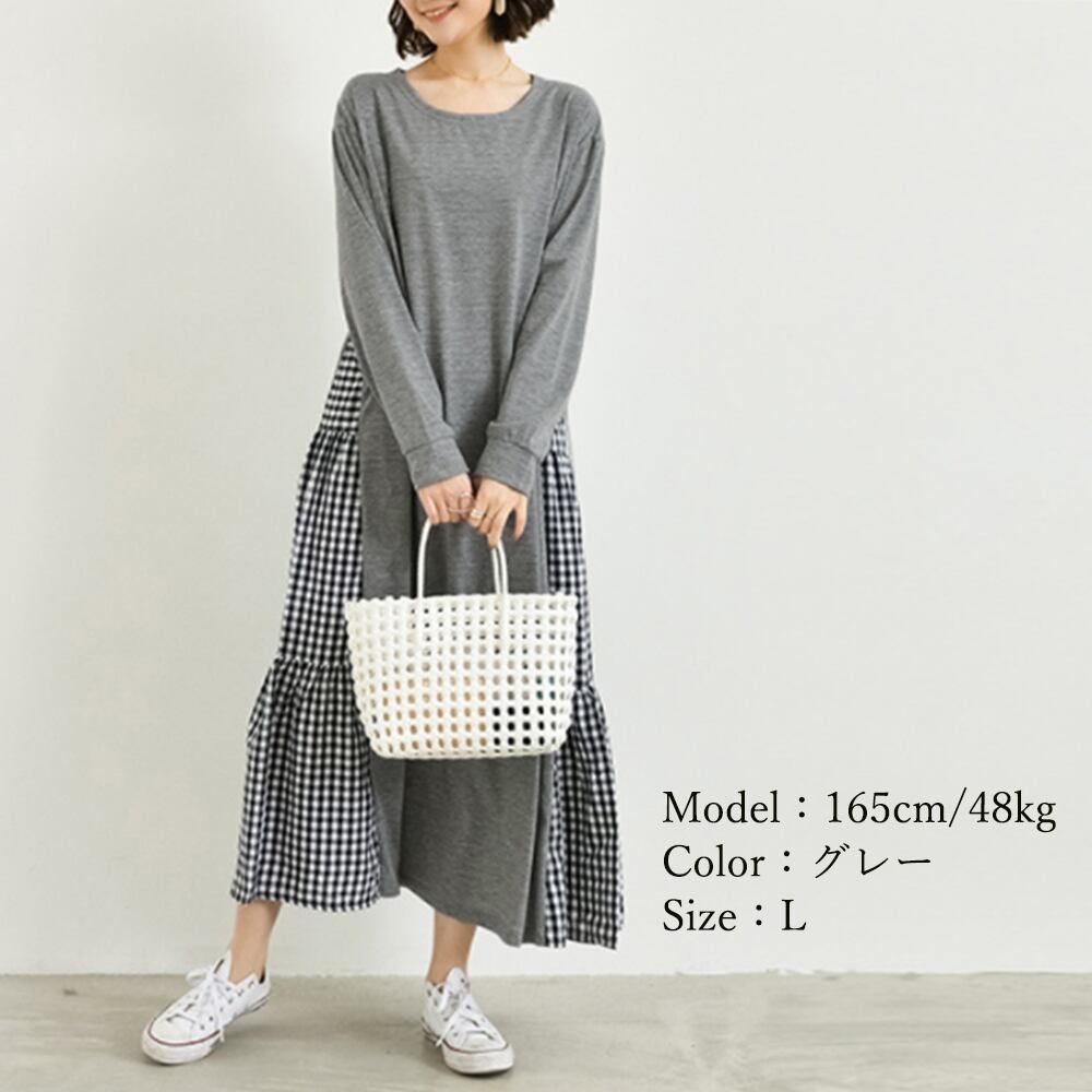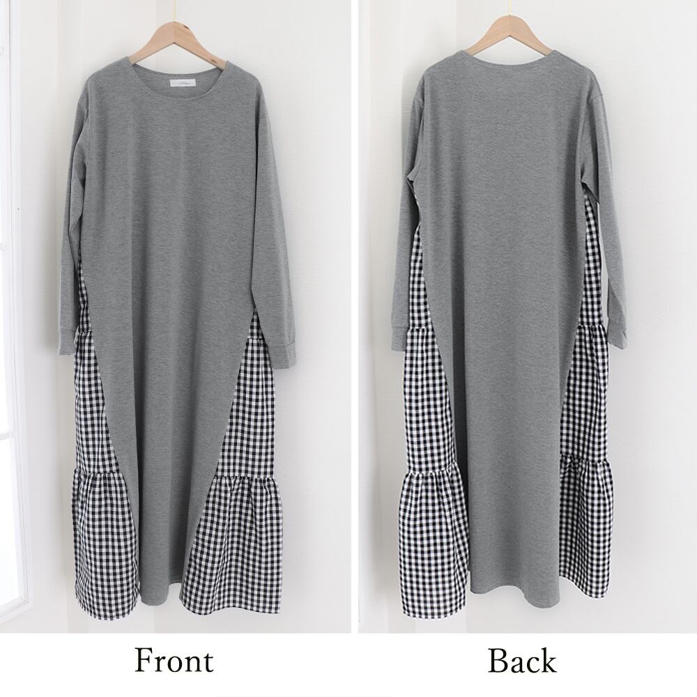 人気柄のギンガムチェックを取り入れてシンプルだけどどことなく遊びゴコロ溢れるデザインのロングスリーブワンピース