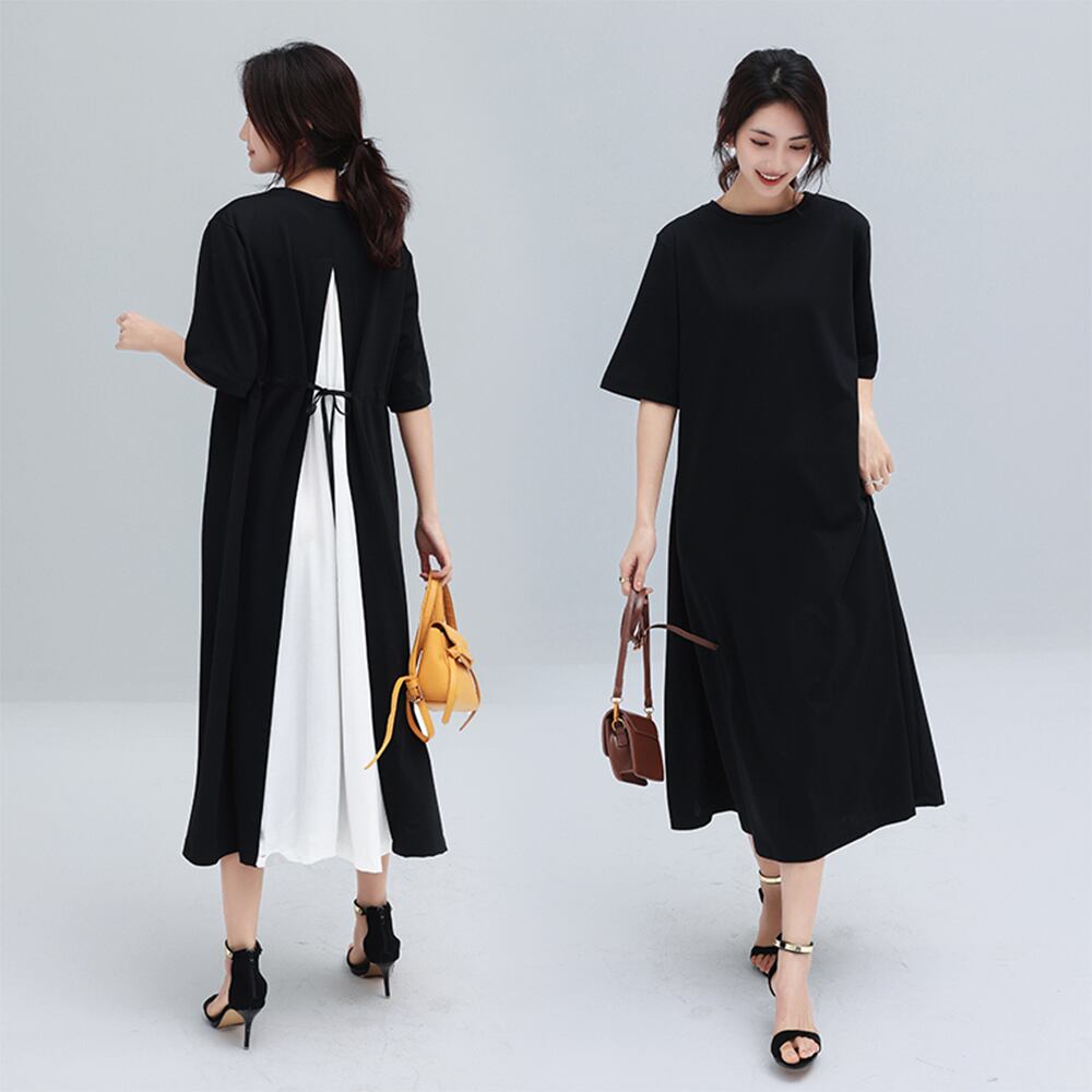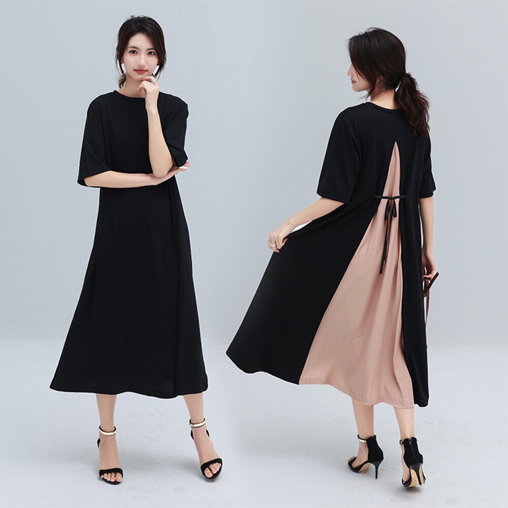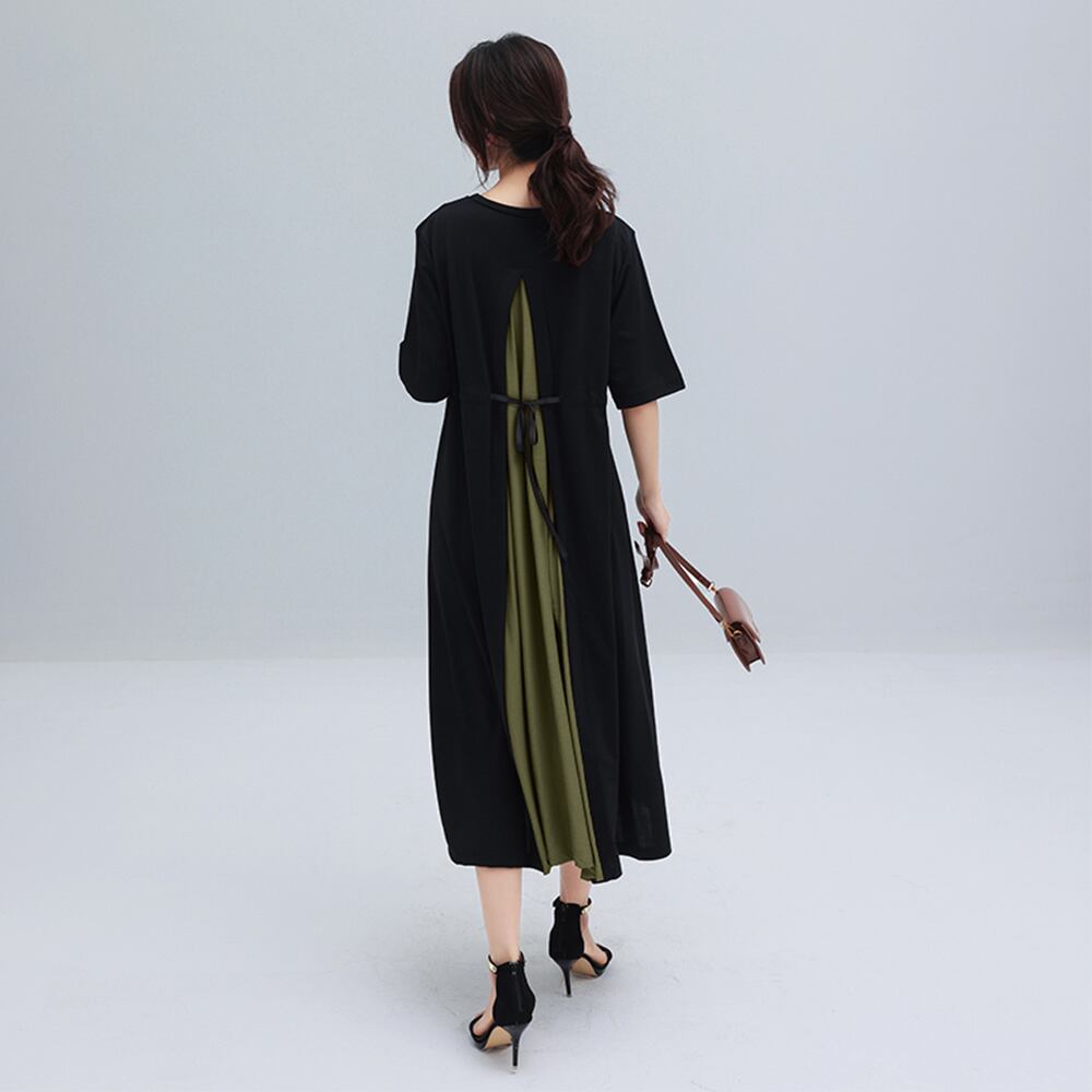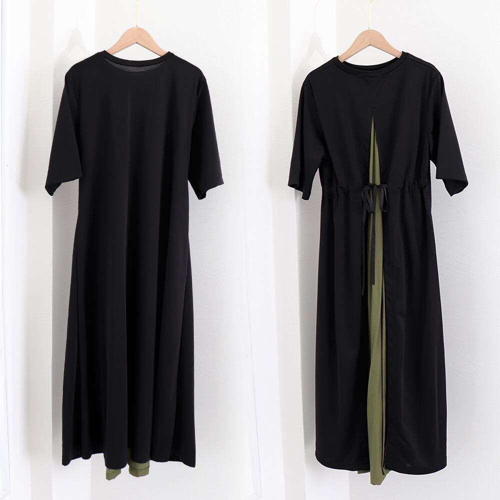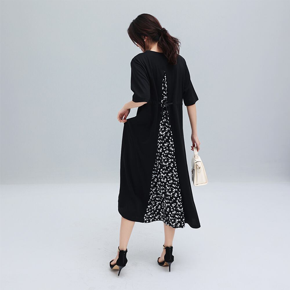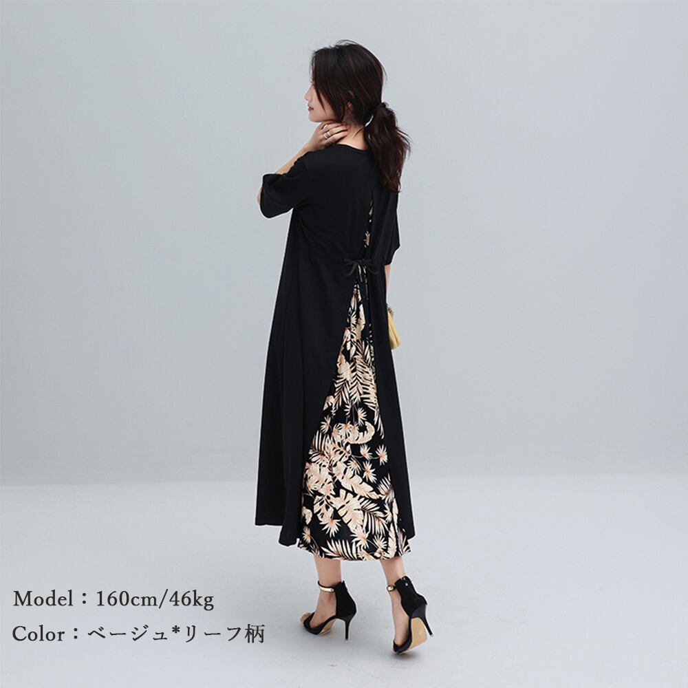 バックの切り替えデザインがおしゃれ感と女性らしさをプラスするロングワンピース