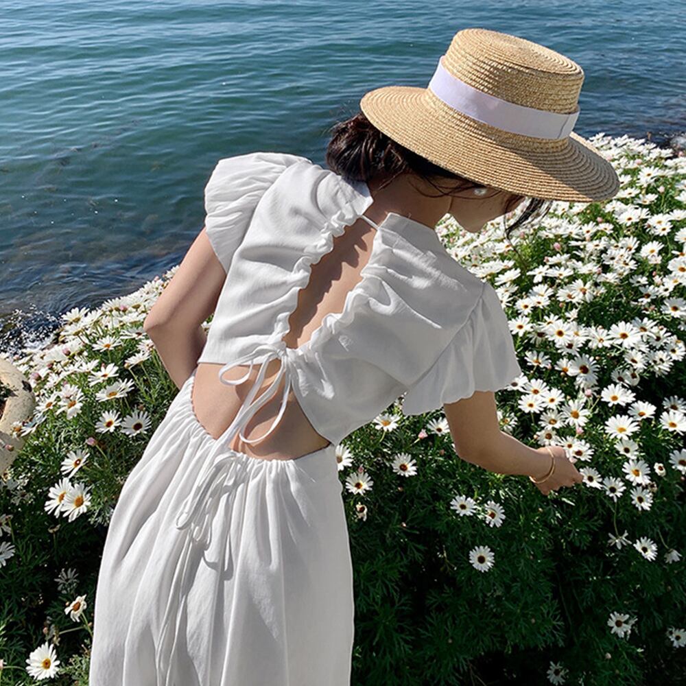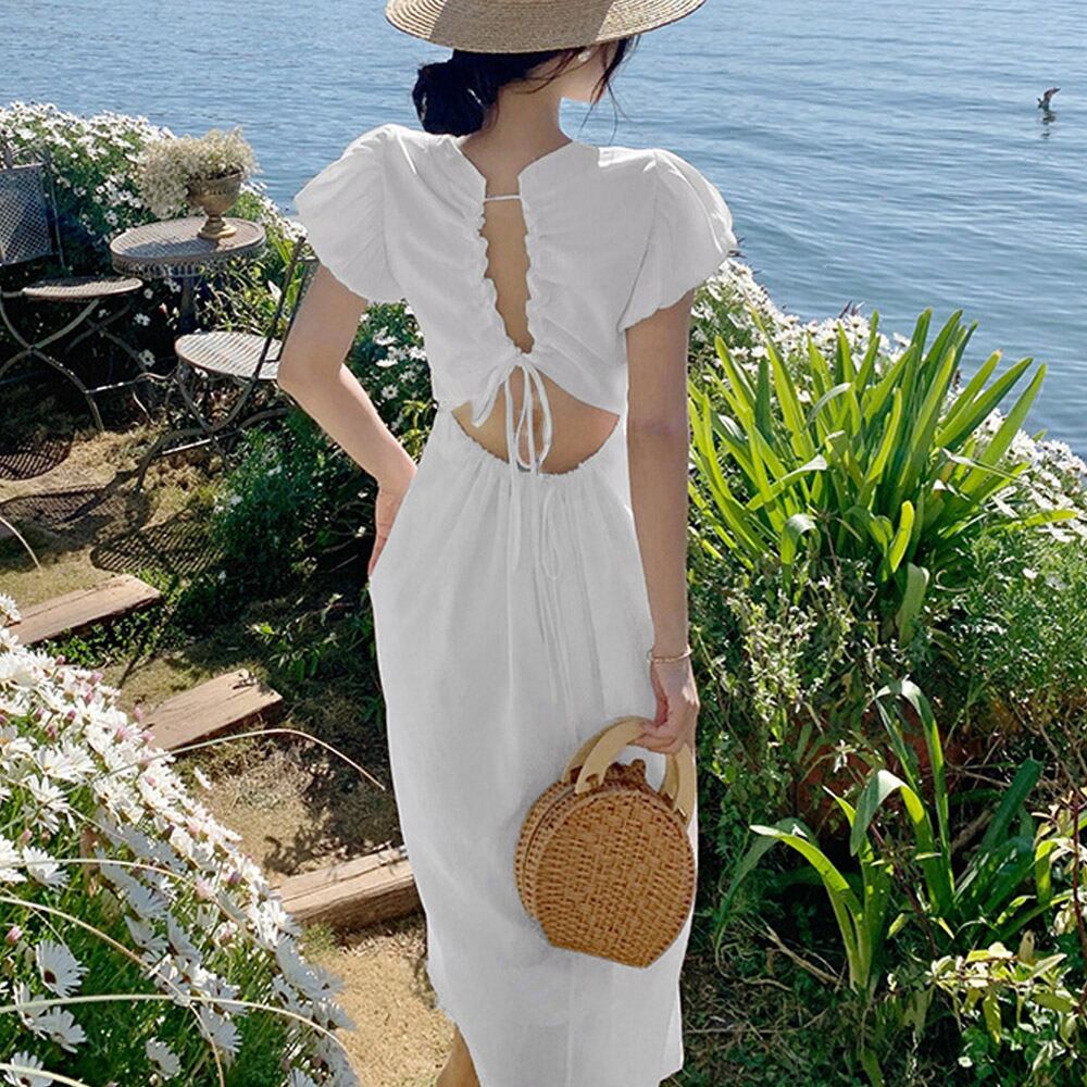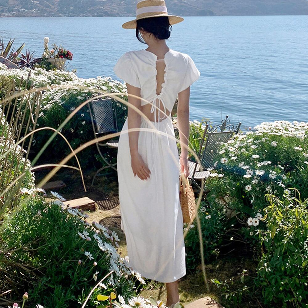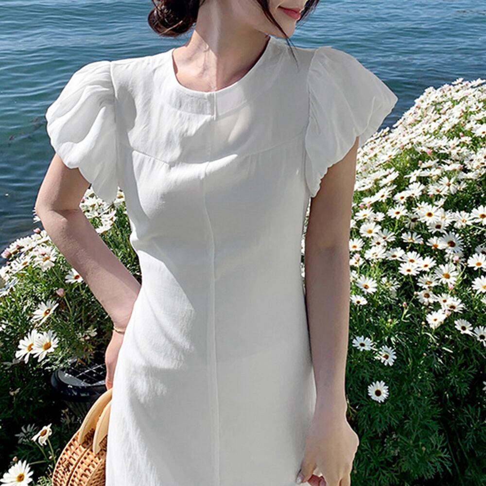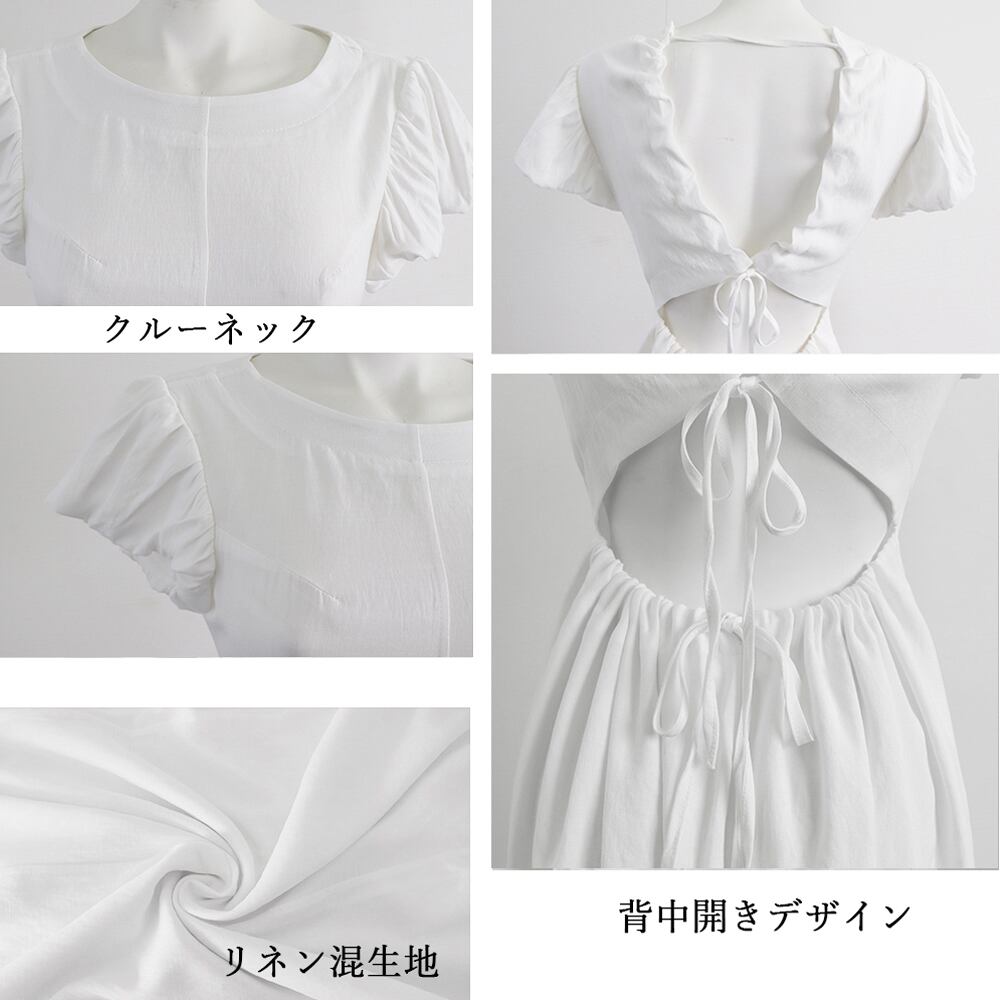 女性らしさを引き立てるリネン混ロングワンピース
