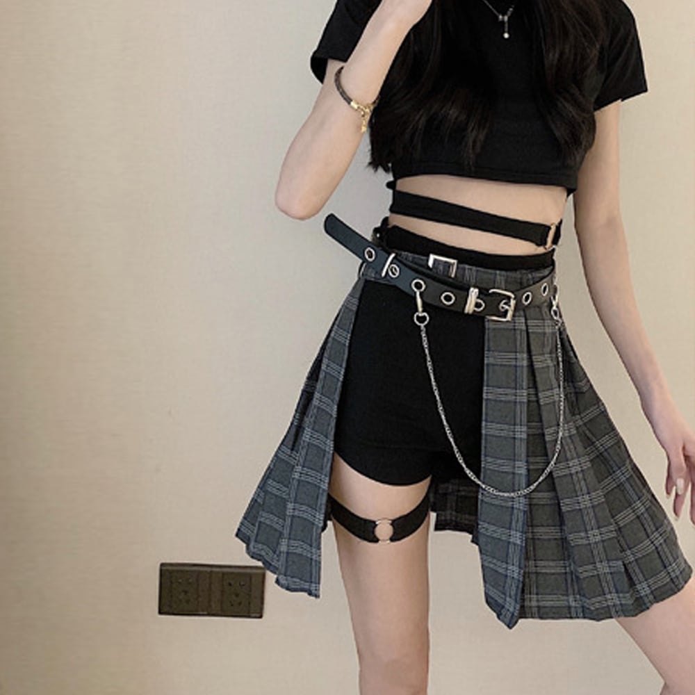ハイウエストのミニフレアスカートは、ハイソックスやニーハイとの相性も抜群