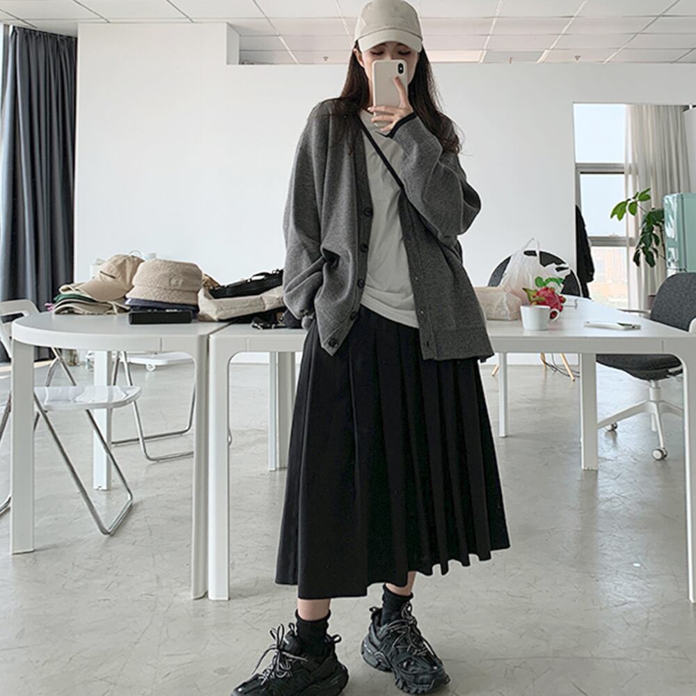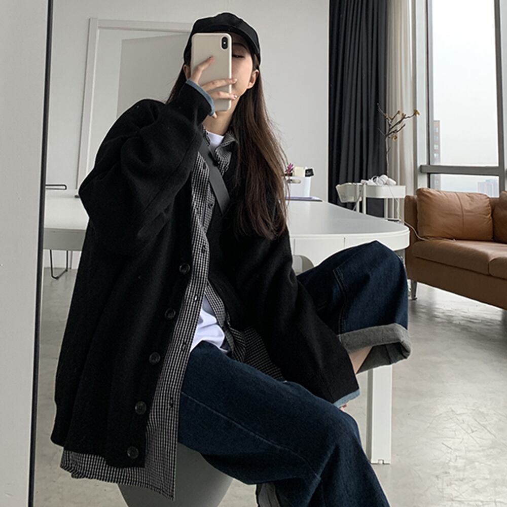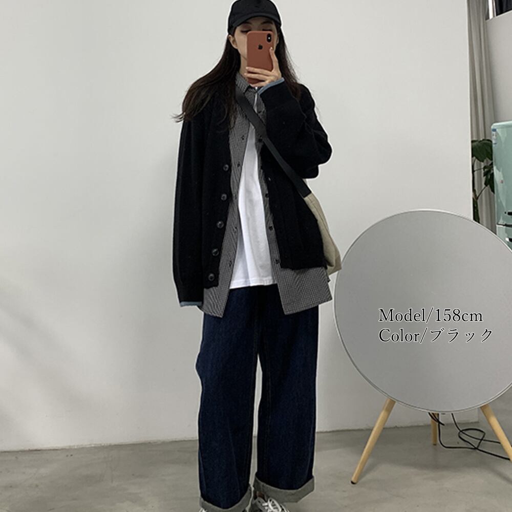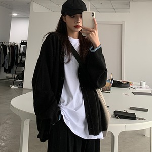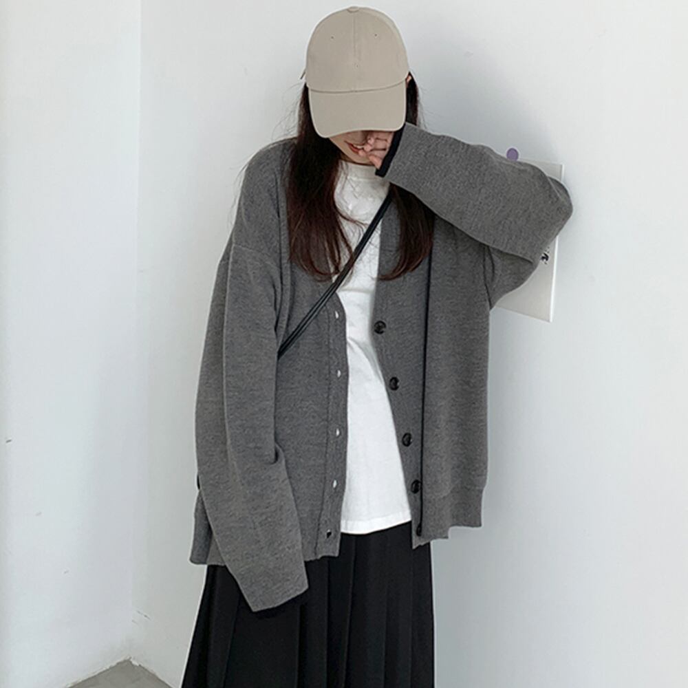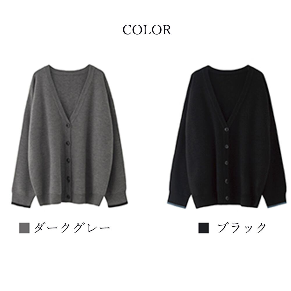 デコルテをスッキリ見せるVネックのシンプルなデザインで気軽に羽織れるニットカーディガン