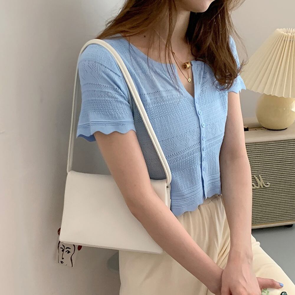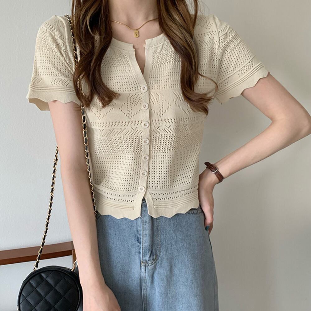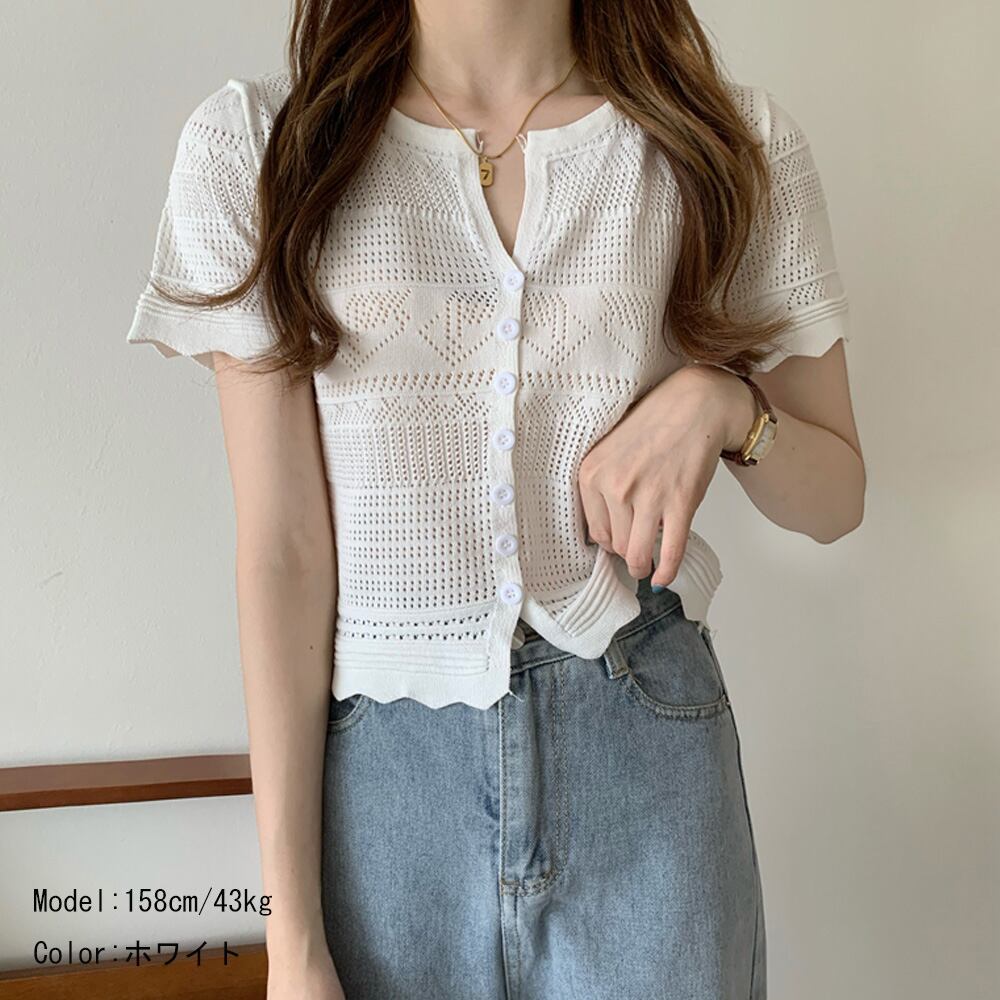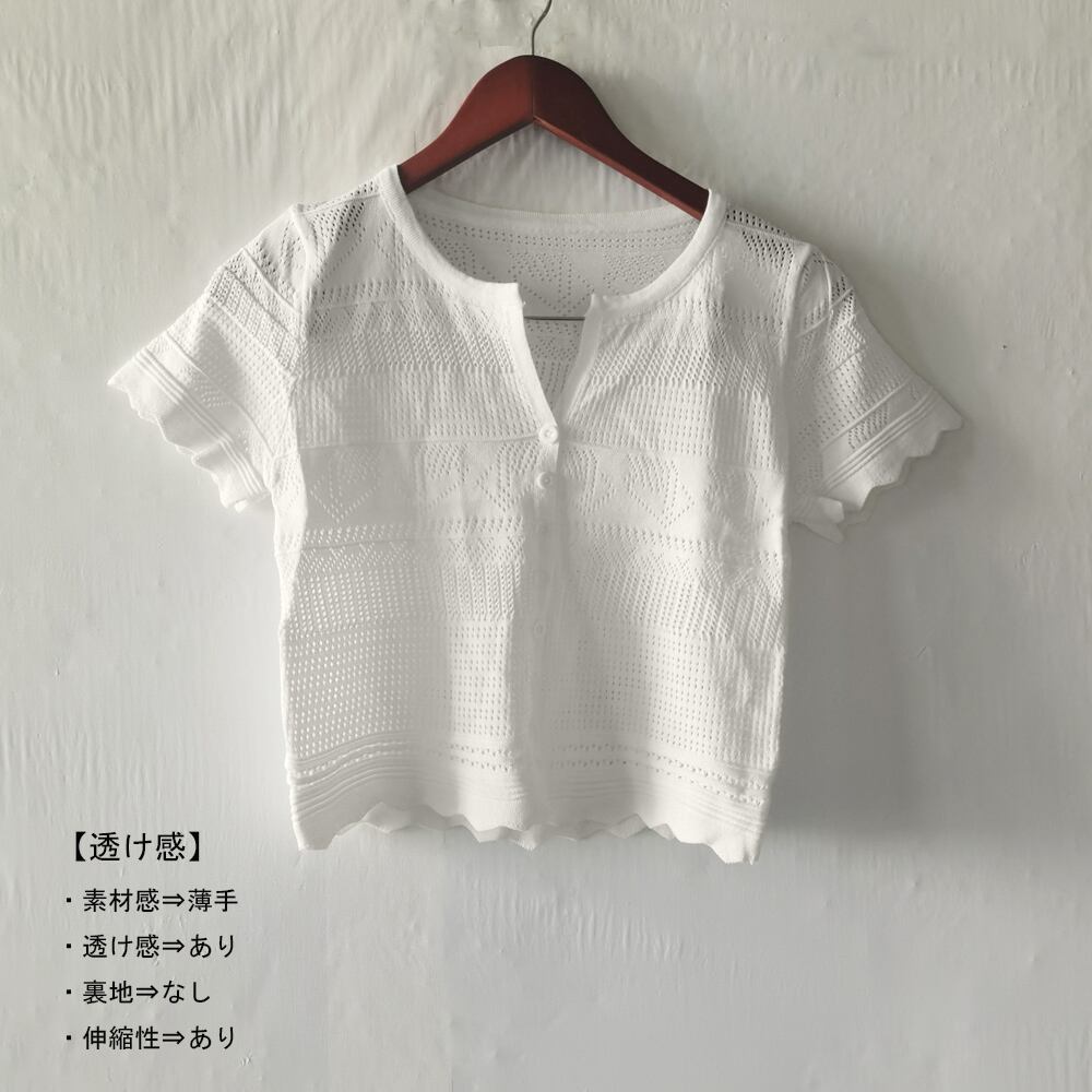 繊細な透かし柄デザイン透かし編みサマーニットカーディガン