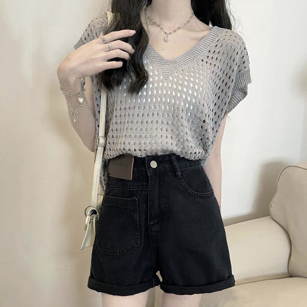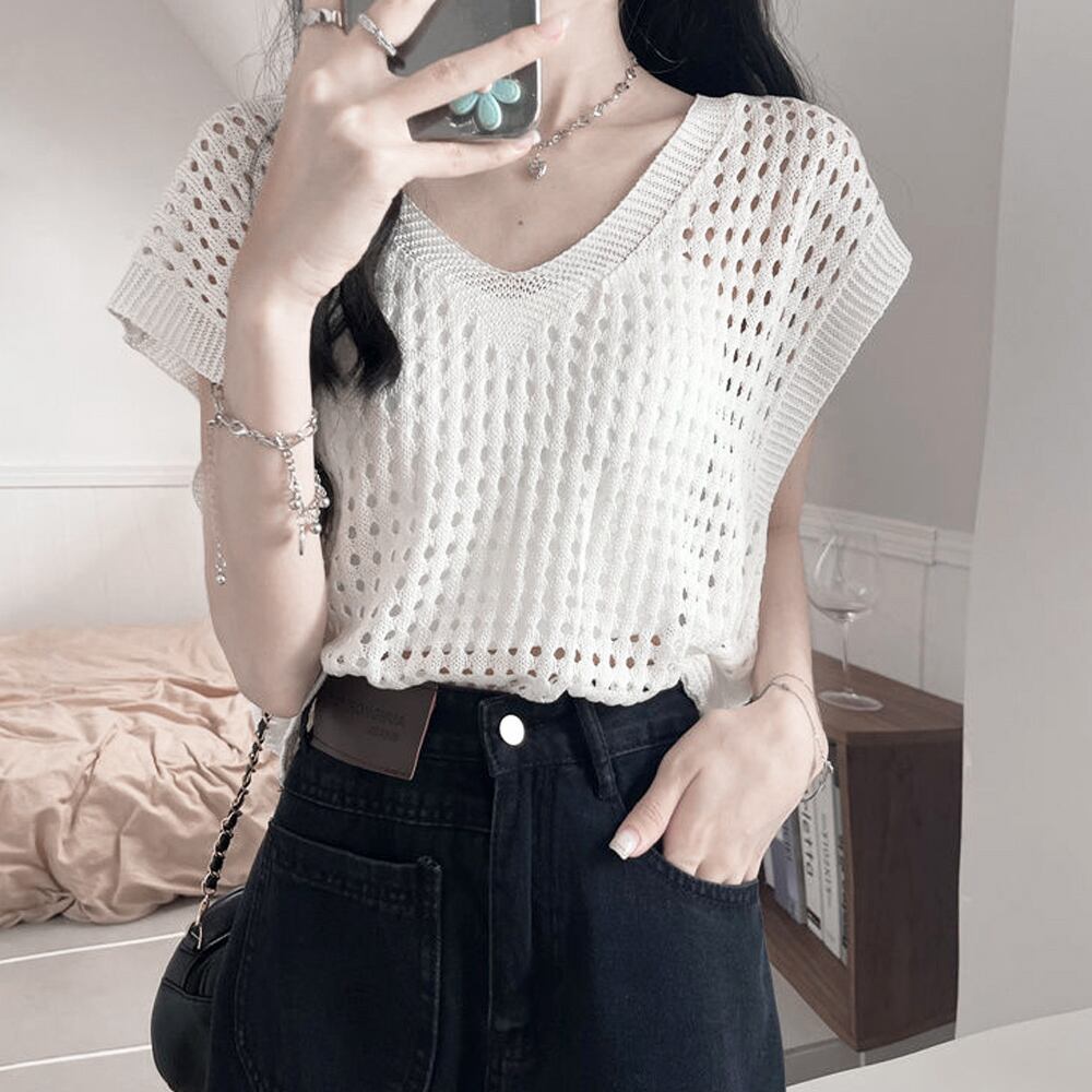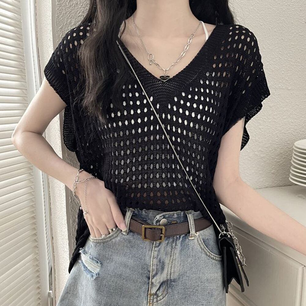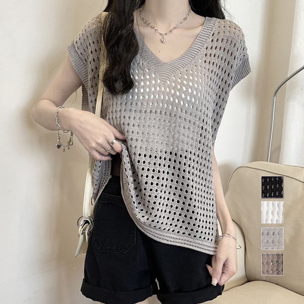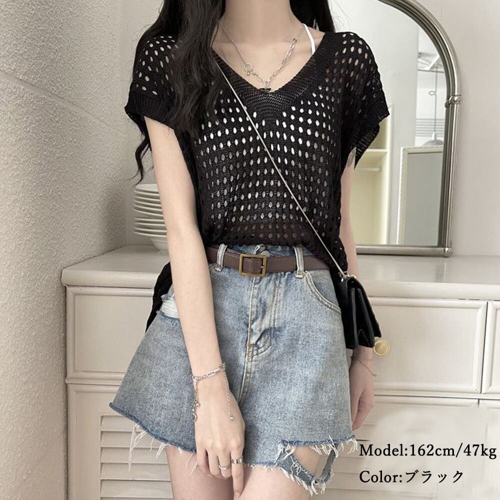 ざっくりとした透かし編みで、ヘルシーな肌見せが出来るニットトップス
