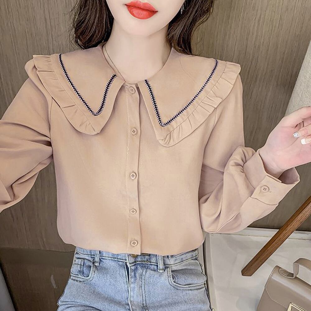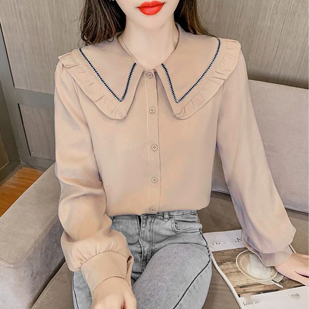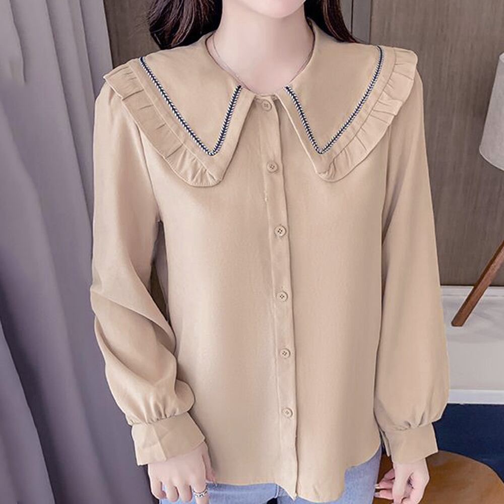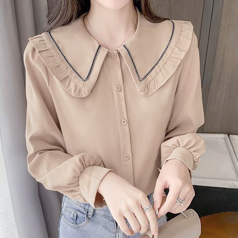 スタイリングのアクセントになるビックカラーがポイントの長袖シャツブラウス