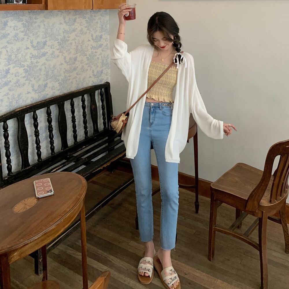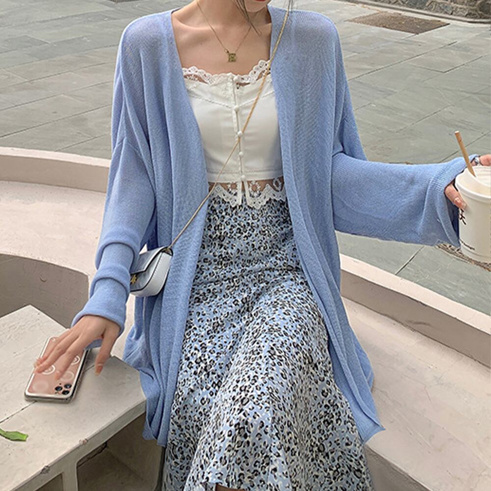 紫外線から肌を守りながら、夏の暑い日でも快適に過ごせるニットカーディガンです