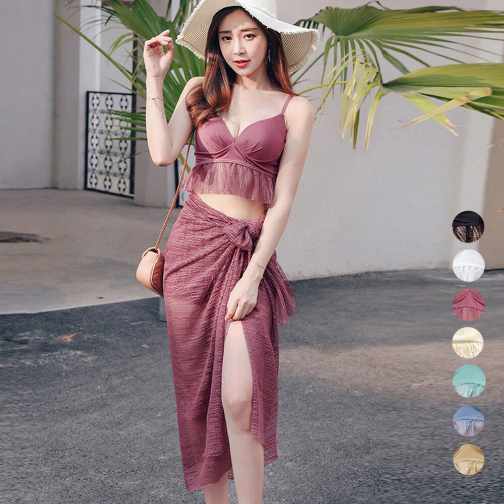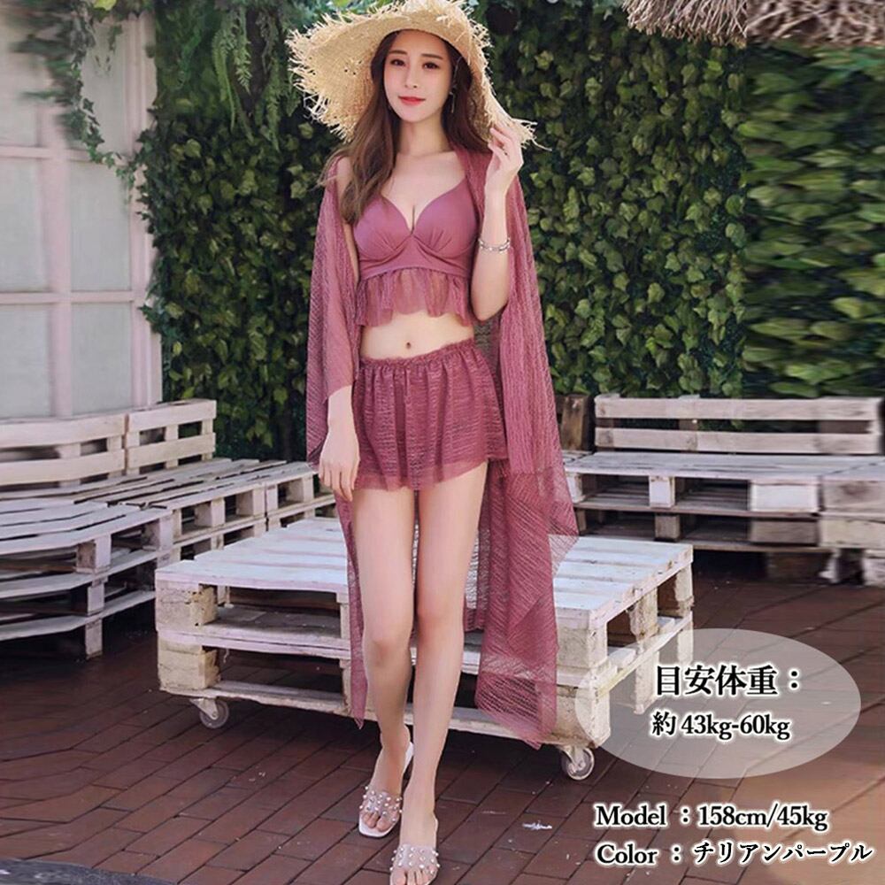 ボディラインがスッキリ見えるスリムタイプなセパレート水着3点セット