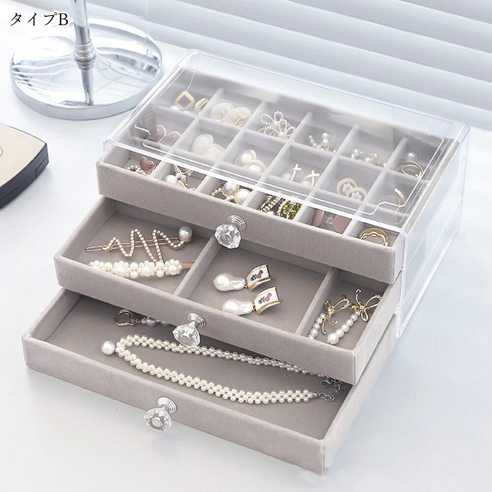 お手持ちのジュエリーやアクセサリーなどの小物を一括管理できる3段引き出しジュエリー収納ボックスです